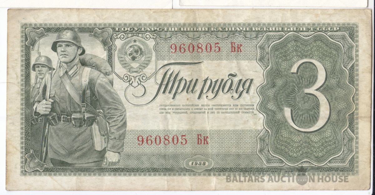 Banknote, Krievija/Russia, 3 Rubļi 1938 aXF/XF