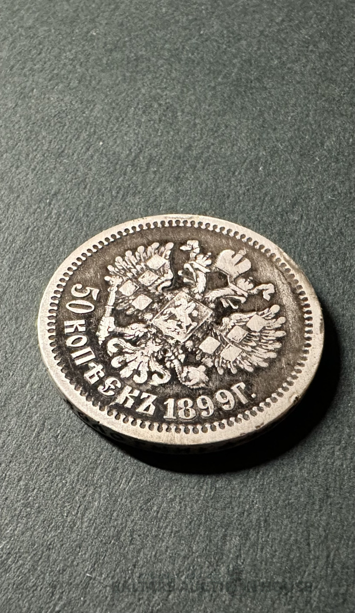 50 KOPEIKAS, sudrabs, 1899. g., Krievijas Impērija, AG, svars 9.76 grami.