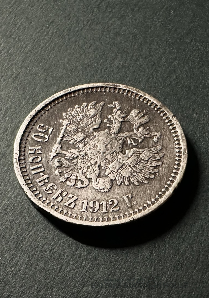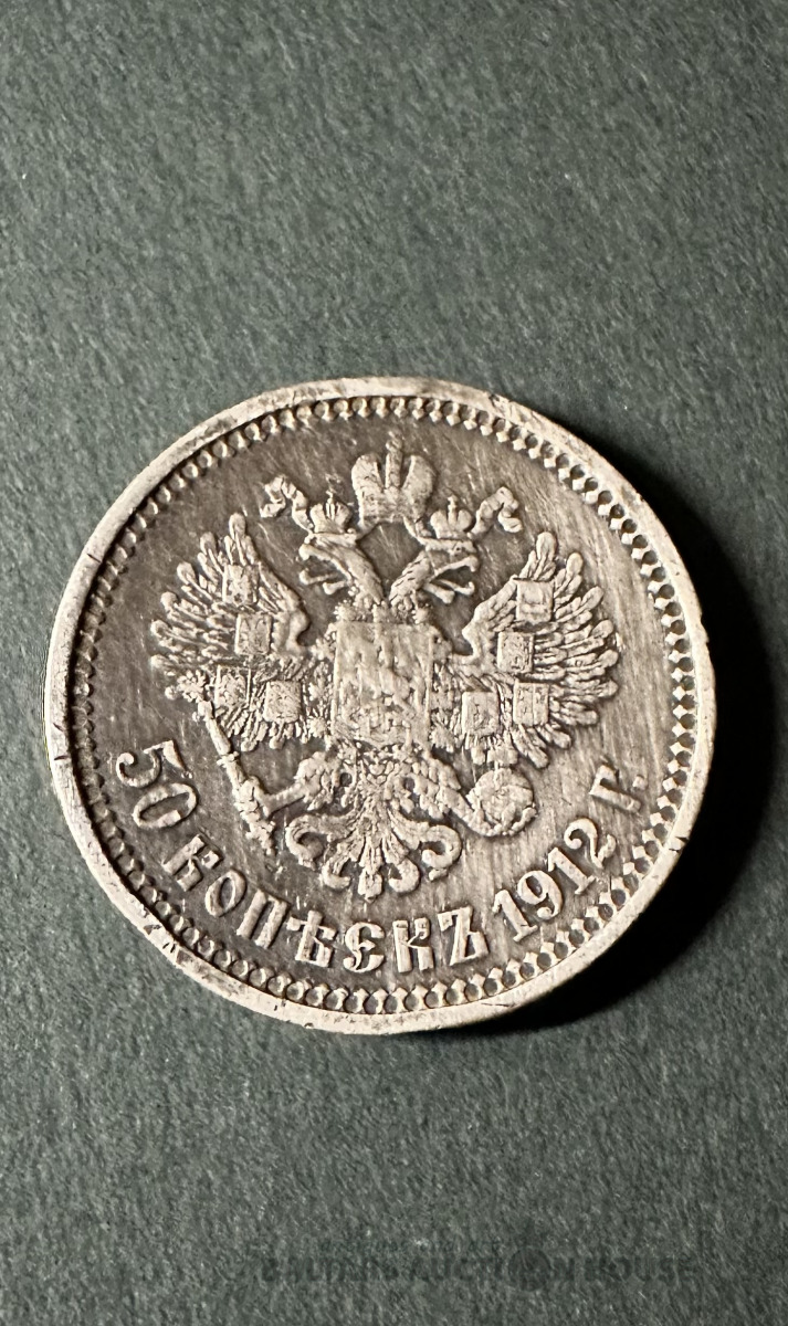 50 KOPEIKAS, sudrabs, 1912.g., Krievijas Impērija, EB, svars 9.9 grami.