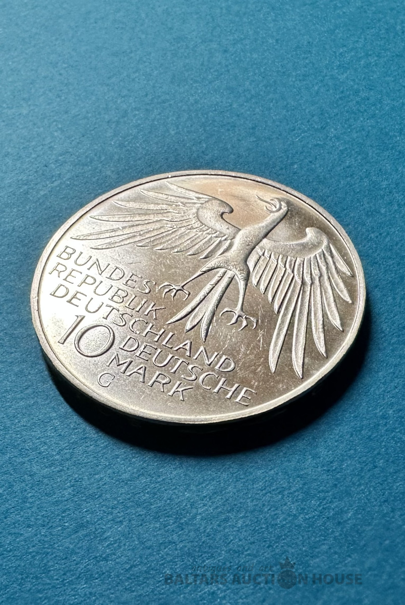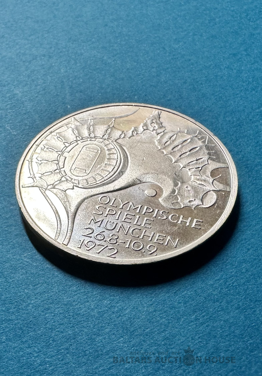10 vācu markas, izdotas par godu 1972. gada Olimpiskajām spēlēm Minhenē Vācijā, sudrabs, G, proof, 15.5 gr., UNC.