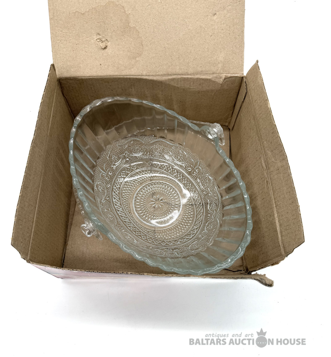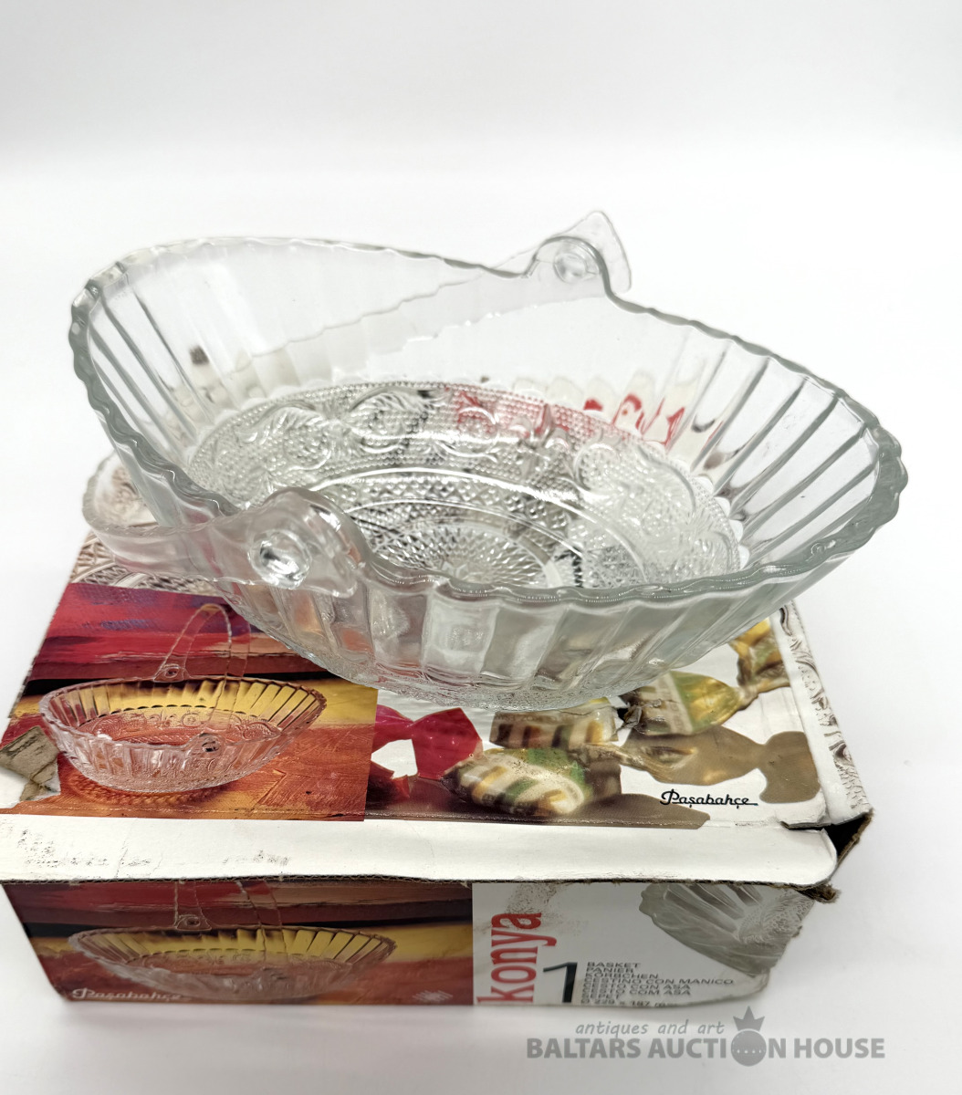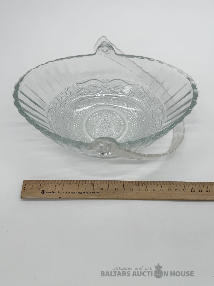 Presētā stikla trauciņš ar metāla rokturi, h=11,6 cm ( izmērs bez roktura )
