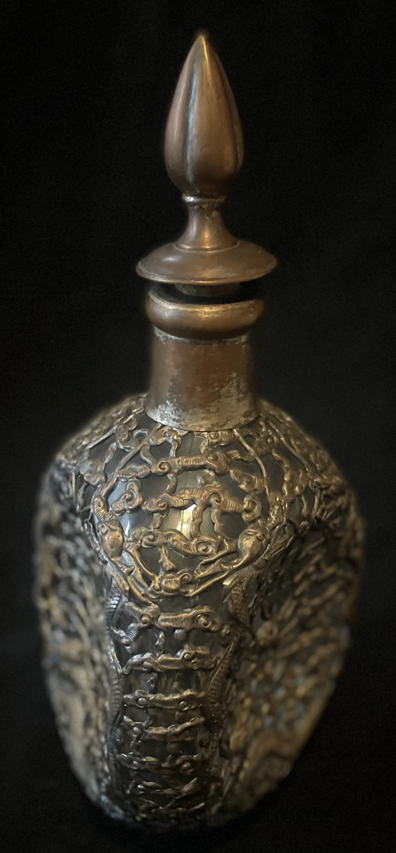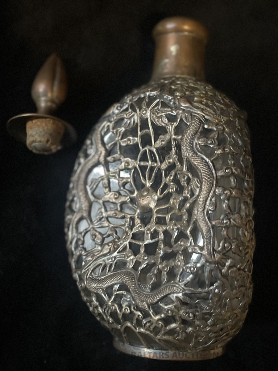 Stikla karafe metāla ietērpā, apsudrabojums, h=28,5 cm