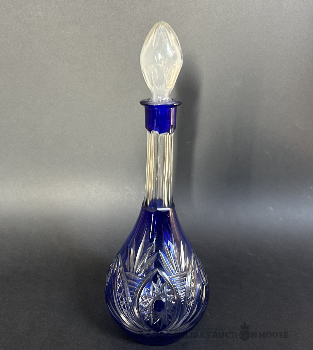 Krāsaina stikla karafe, H -30 ar korķi Karafes kakliņam augšējai malai defekts