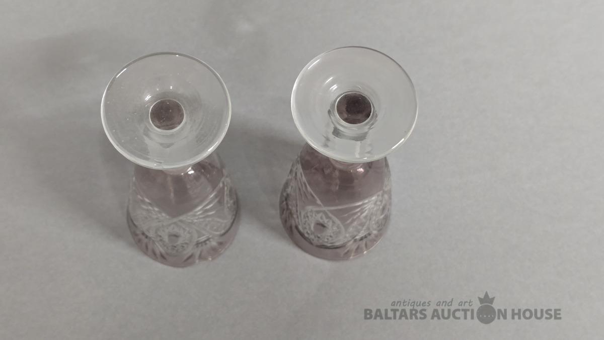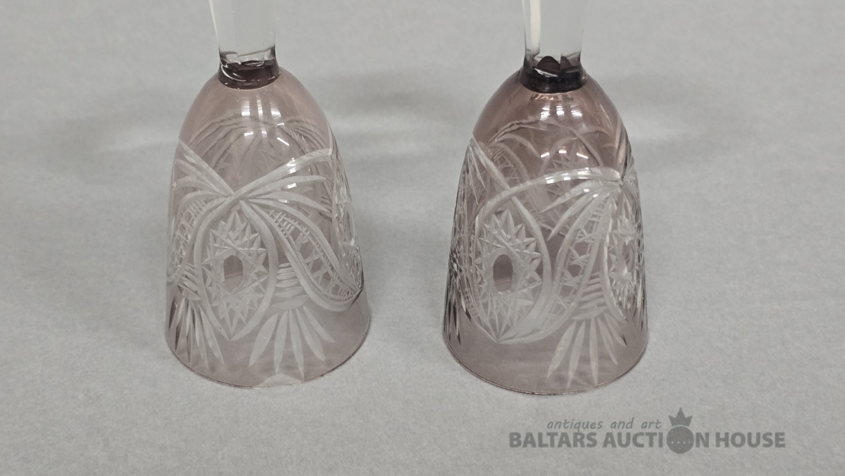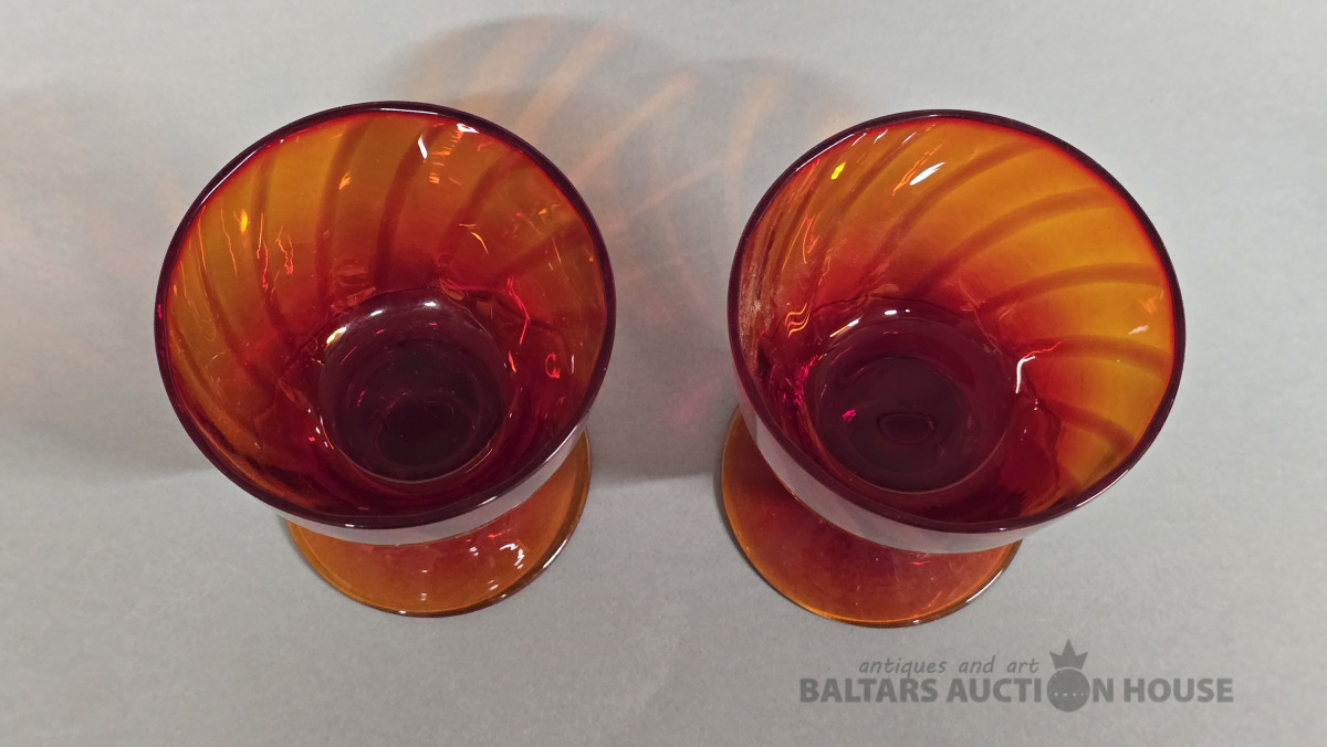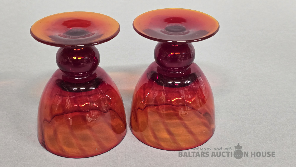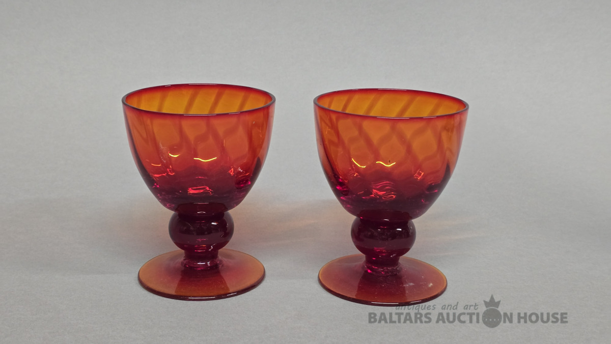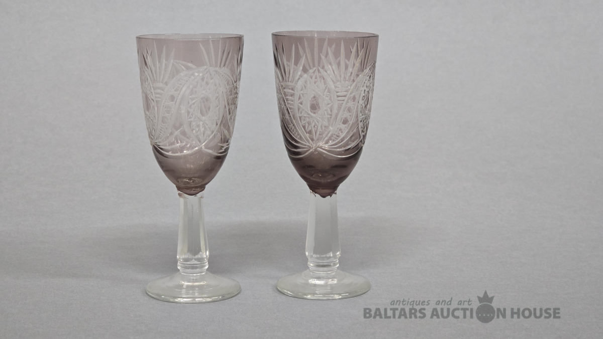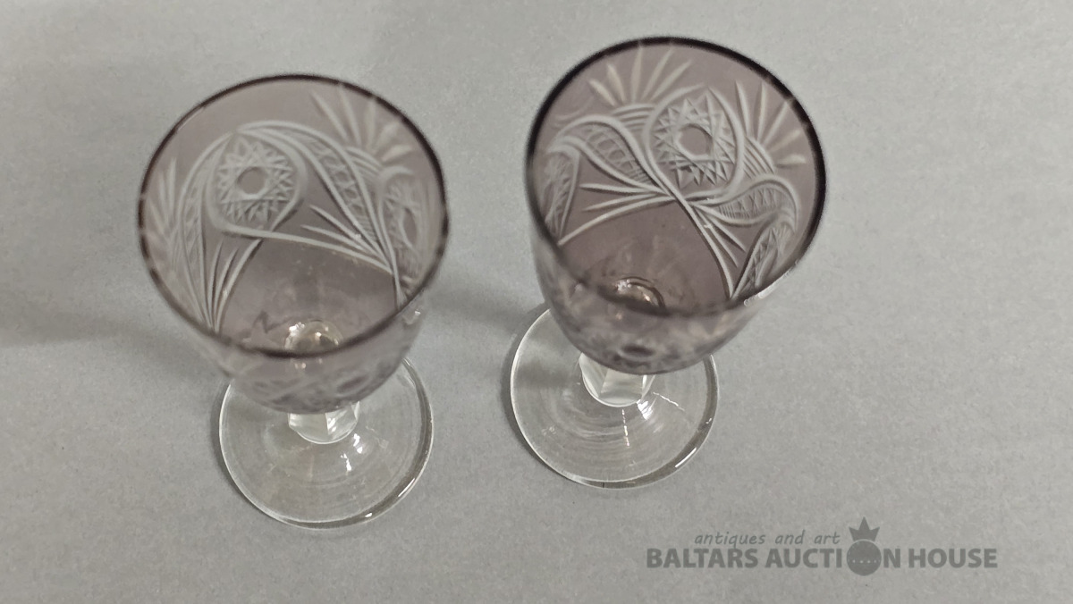 Krāsainā stikla glāzes. Iļģuciema stikla fabrika. 20 gs. (Vienai slīpējums).Divkrāsains stikls,slīpējums.