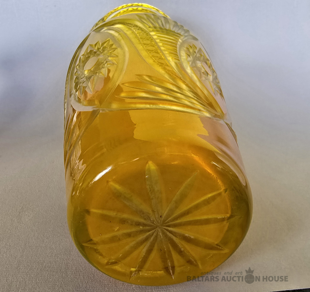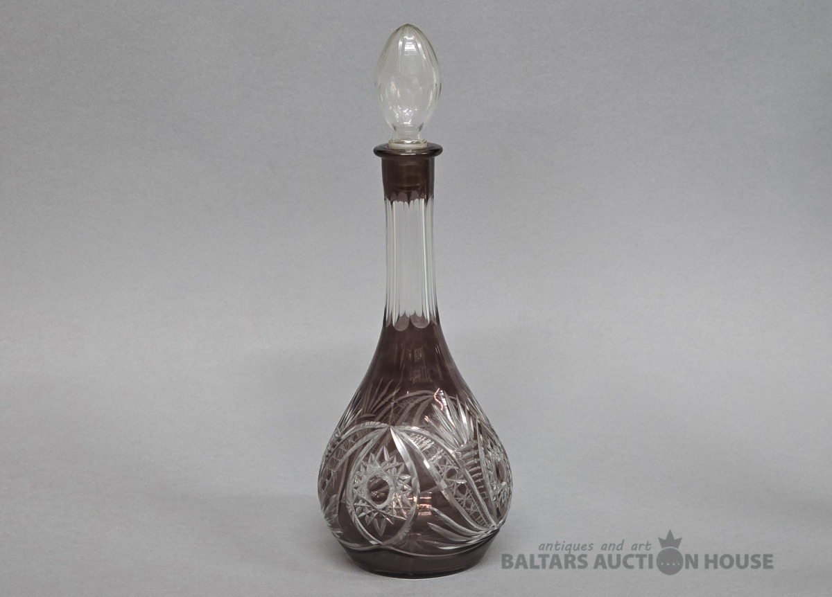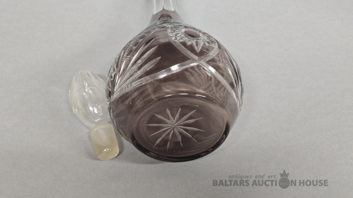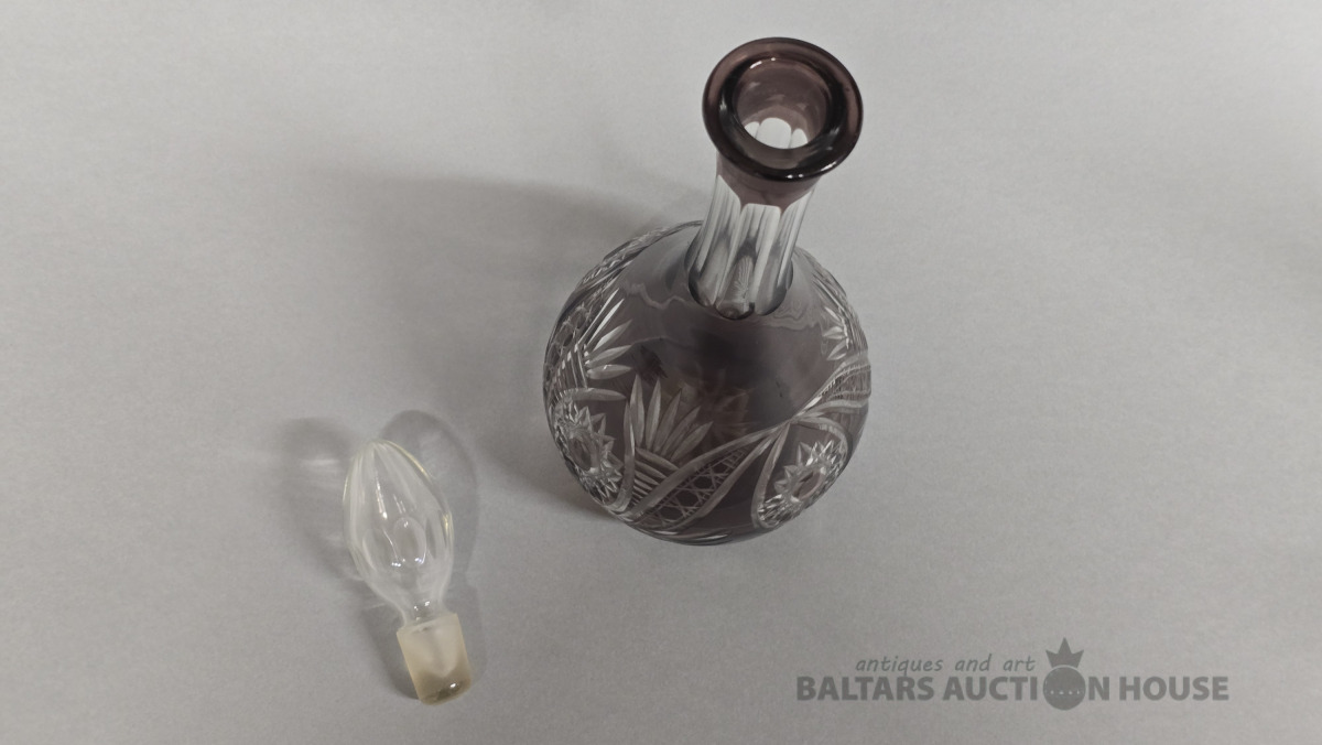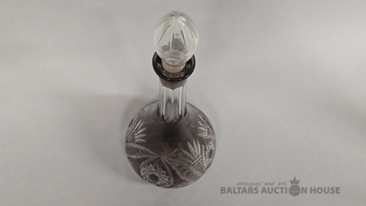 Krāsainā stikla karafe. Iļģuciema stikla fabrika. 20.gs Divkrāsains stikls,slīpējums.