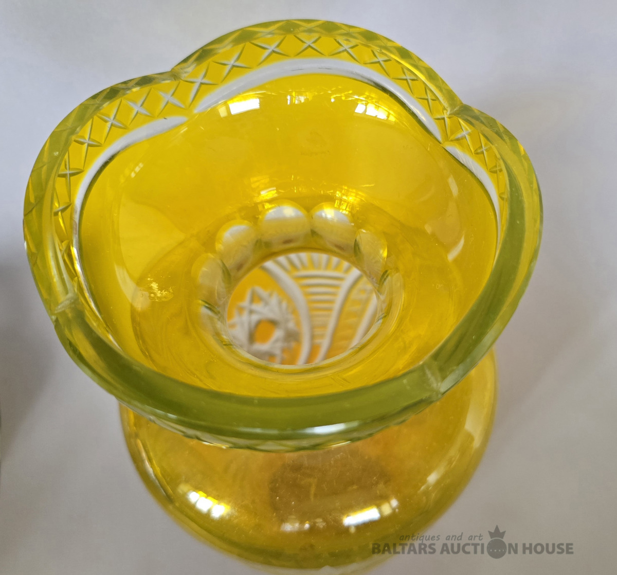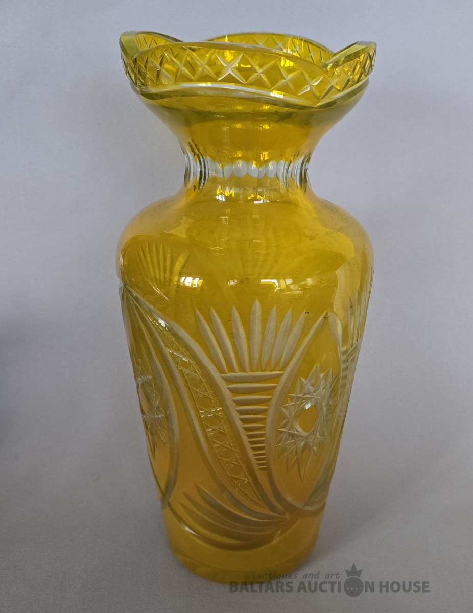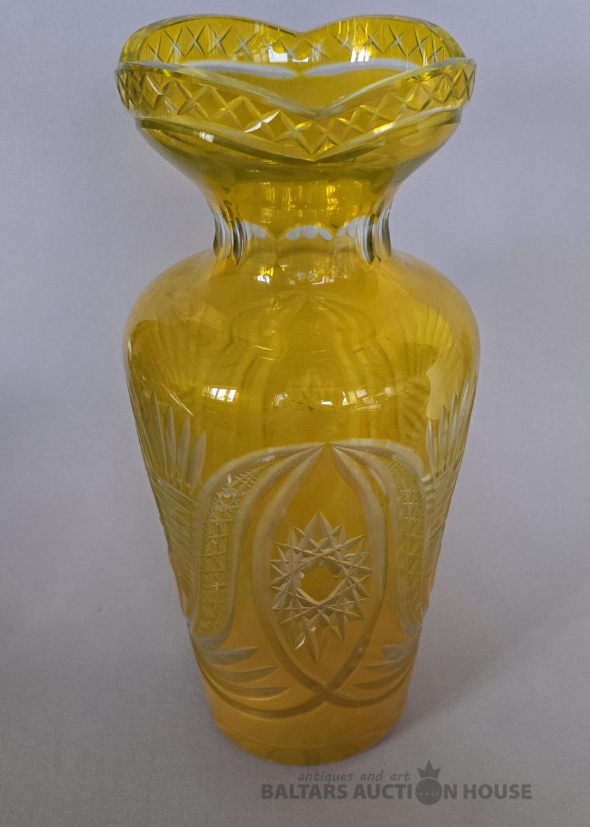 Krāsainā stikla vāze. Iļģuciema stikla fabrika. H 27 cm. Divkrāsains stikls,slīpējums.