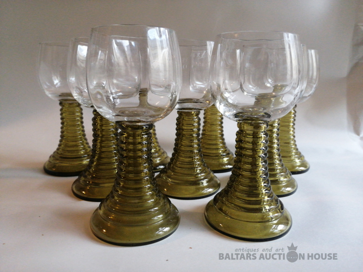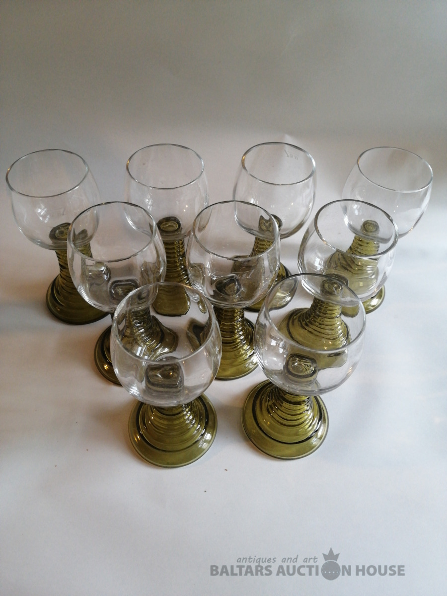 Romero glāzes (9 gab.), krāsainais stikls, augstums 14,5 cm, nelietotas