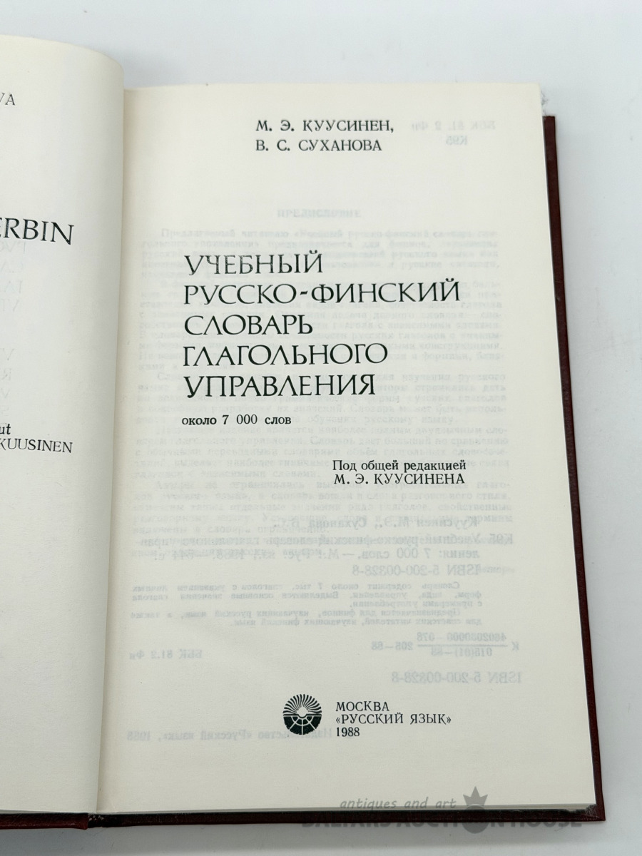 Учебный Русско-Финский словарь глагольного управления. Москва 1988. 542 стр.
