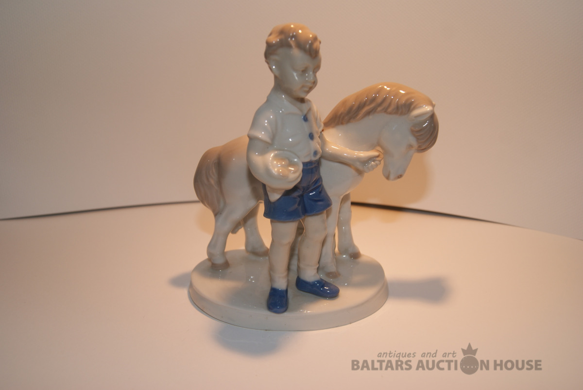 Sena vācu porcelāna figūriņa "Zēns ar zirdziņu"