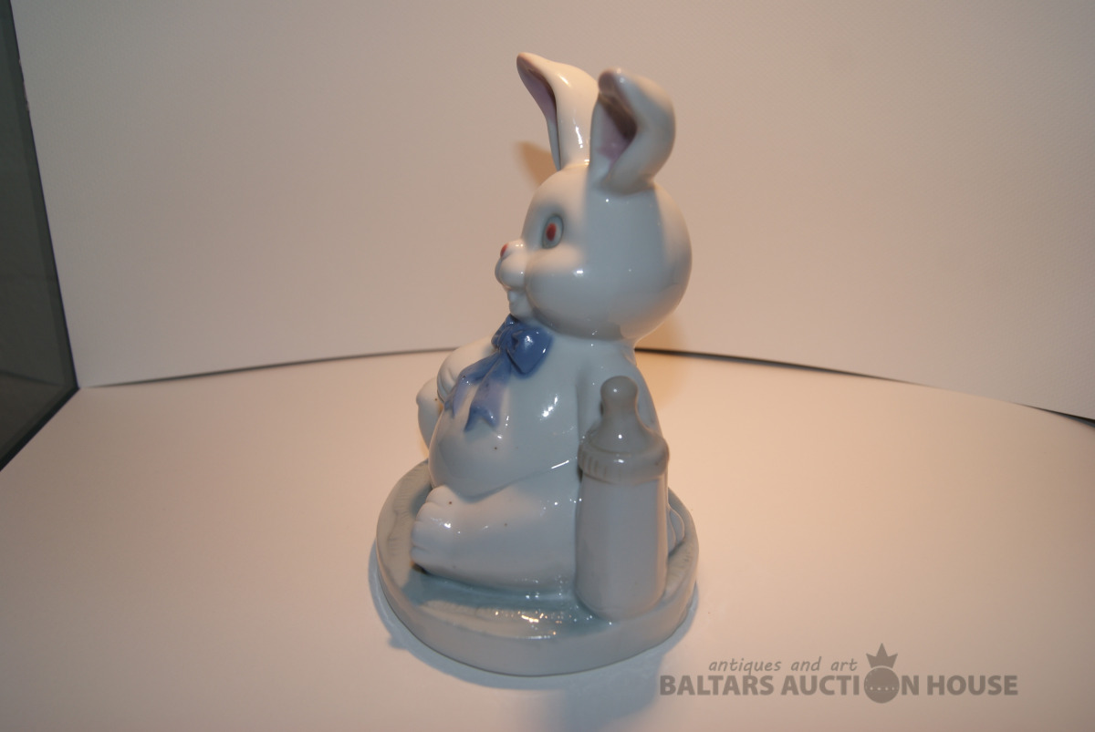 Burvīga vintage porcelāna zaķa figūriņa ar pudelīti (13.5 cm)