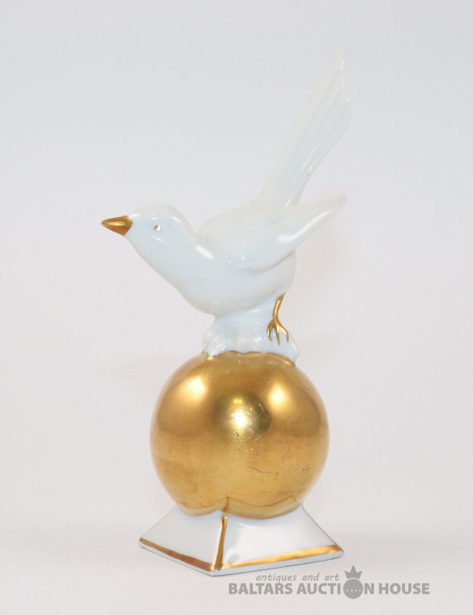 Figūra PUTNS UZ ZELTA BUMBAS. Porcelāns, zeltījums. Gerolds, Vācija. h=13 cm