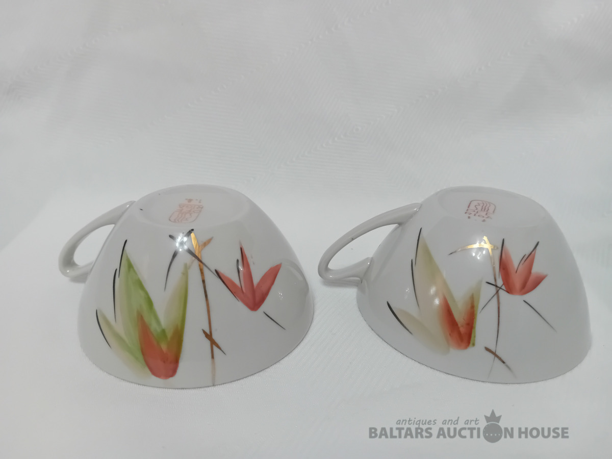 Sakta, divas tējas tases, rokas gleznojums, bez defektiem
