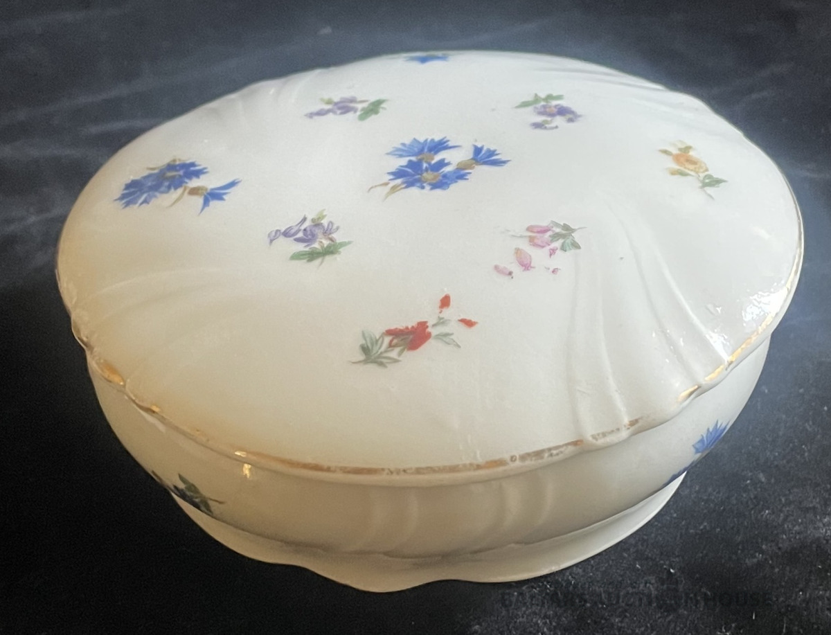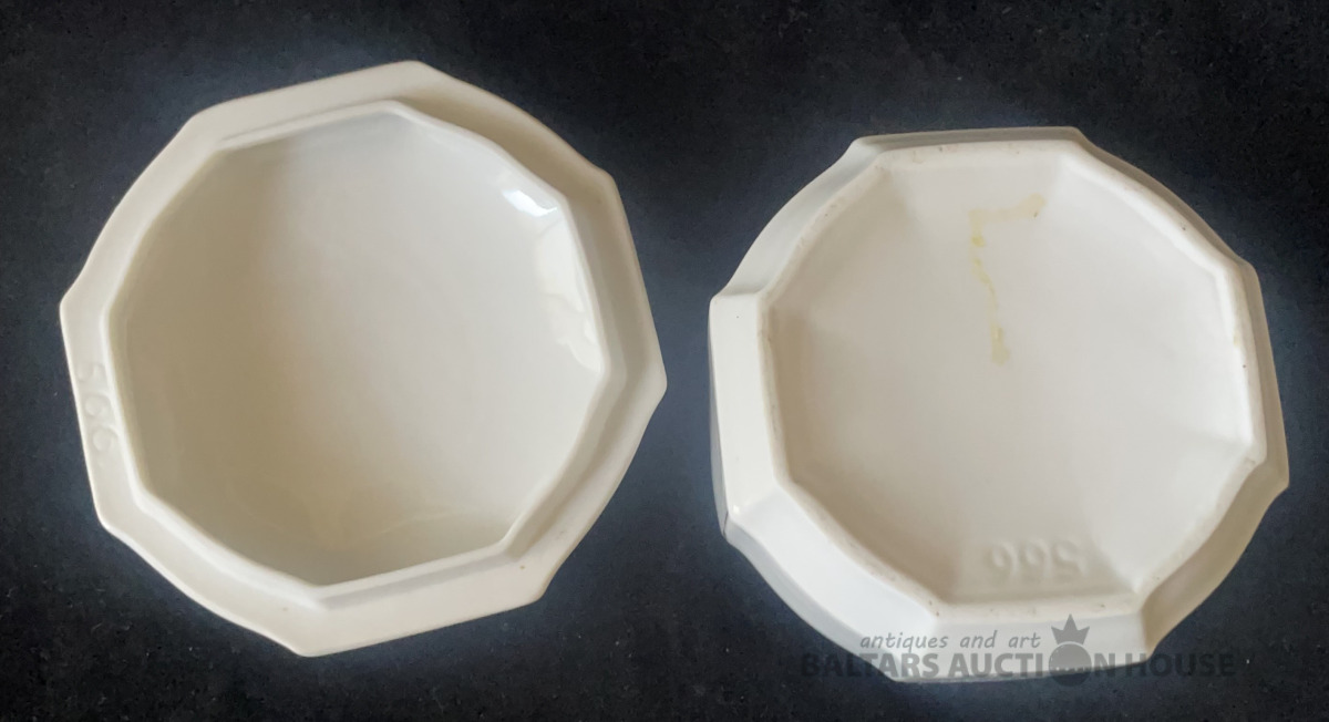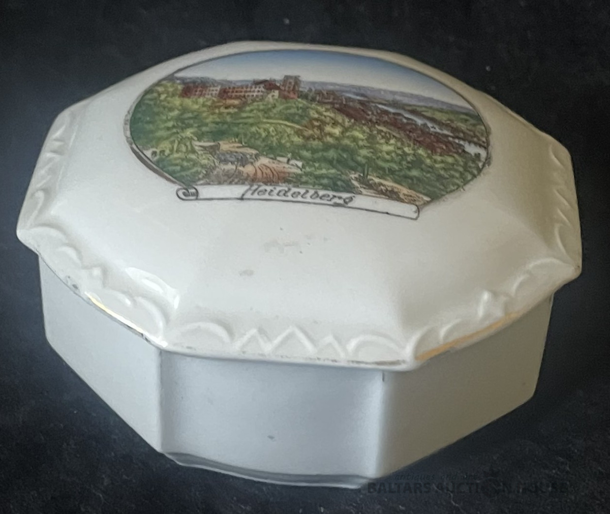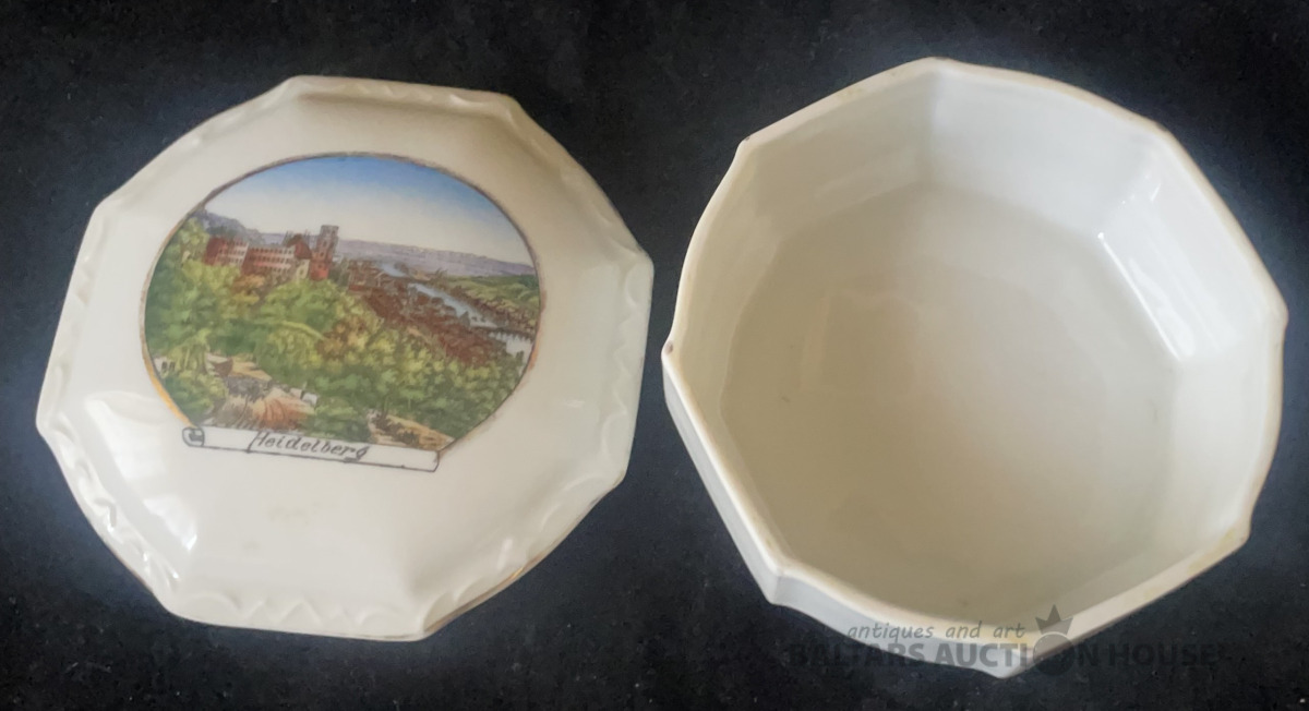 KĀRBIŅA AR VĀKU, Heidelberg, porvelāns, dekols, zeltījums, h=4,2 cm un 8x8 cm, Vācija, ap 1930.g. bez defektiem, jānomazgā !
