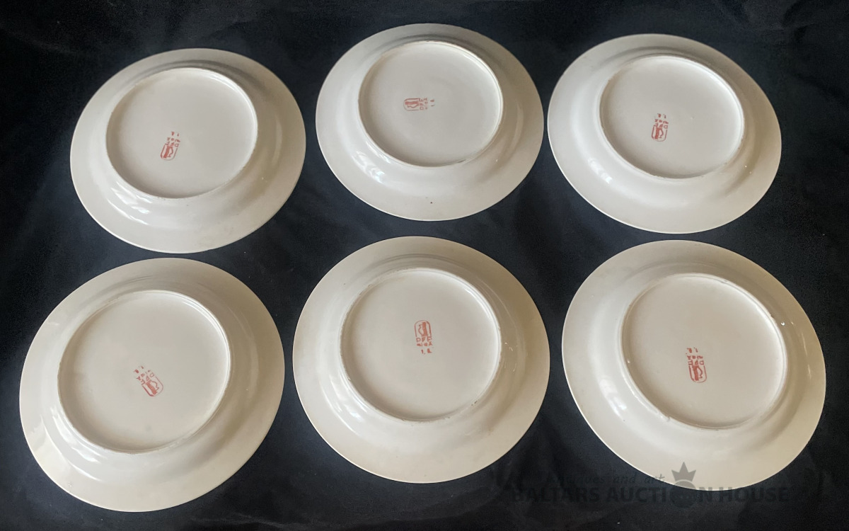 ŠĶĪVJI, 6 gab., porcelāns, zelta apmale, d=19 cm, Kuzņecova f-ka, teicami saglabāti
