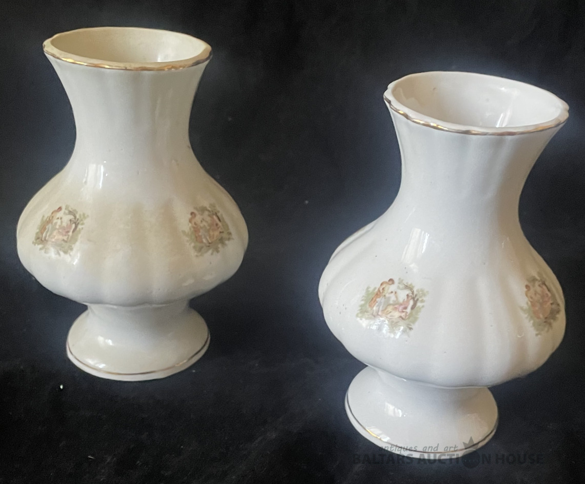 VĀZĪTES, pāris, porcelāns, dekols, zeltījums, h=12 cm, zīmogs noberzts, Eiropa, ap 1975.g.