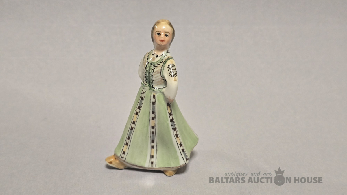 Autordarbs-gleznojuma autore Ilga Dreiblate. statuete, Tautu meita, porcelāns, Rīga (Latvija), PSRS, Rīgas porcelāna rūpnīca.Roku gleznojums.