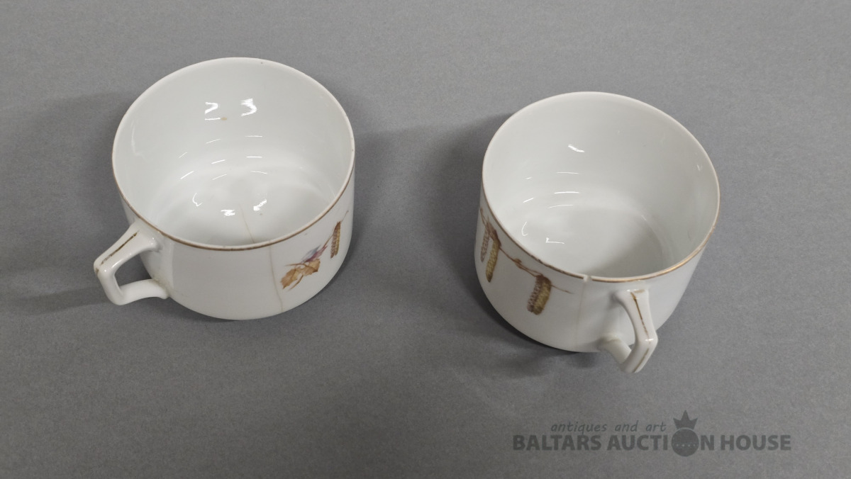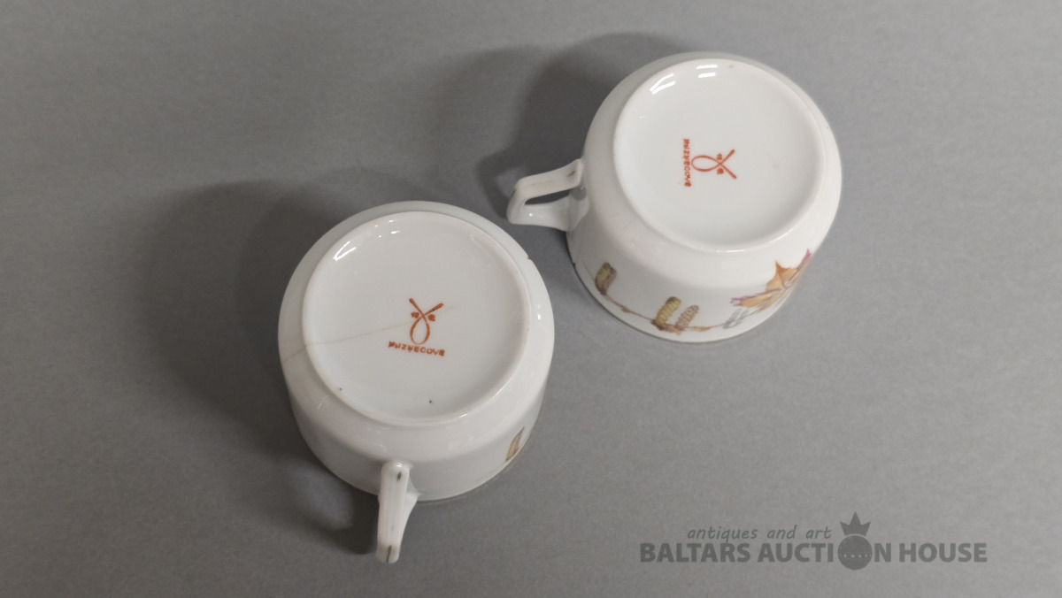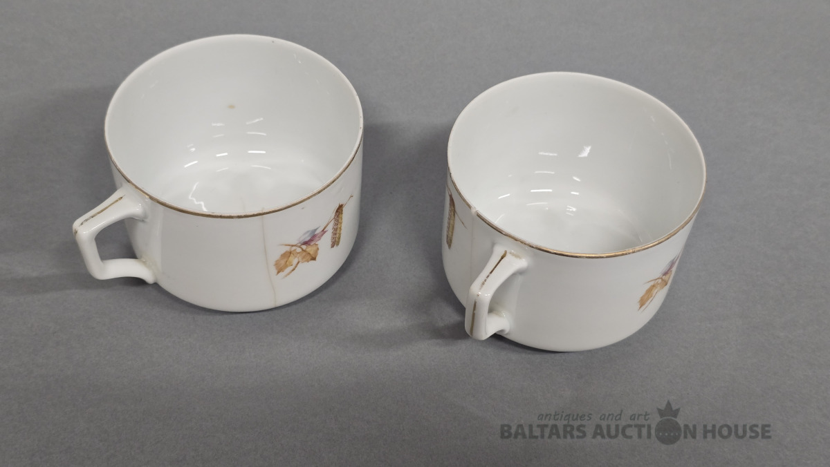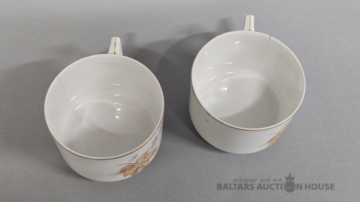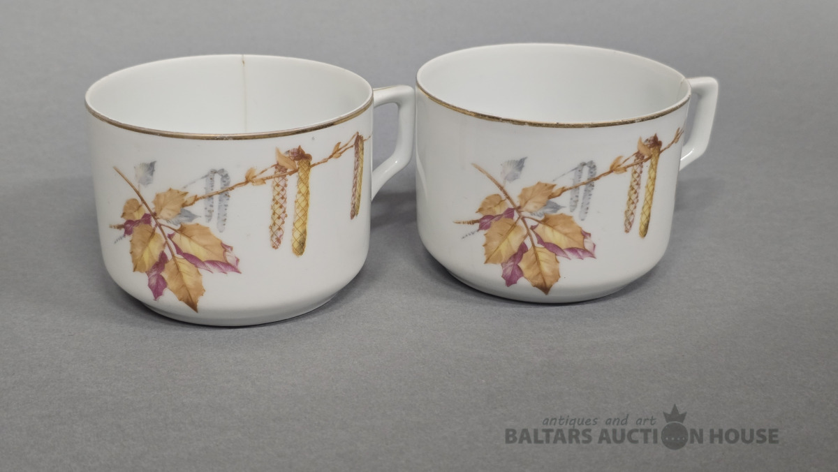 Porcelāna tasītes 2 gab. Kuzņecova porcelāna fabrika. 20 gs.Roku gleznojums. (defekti)