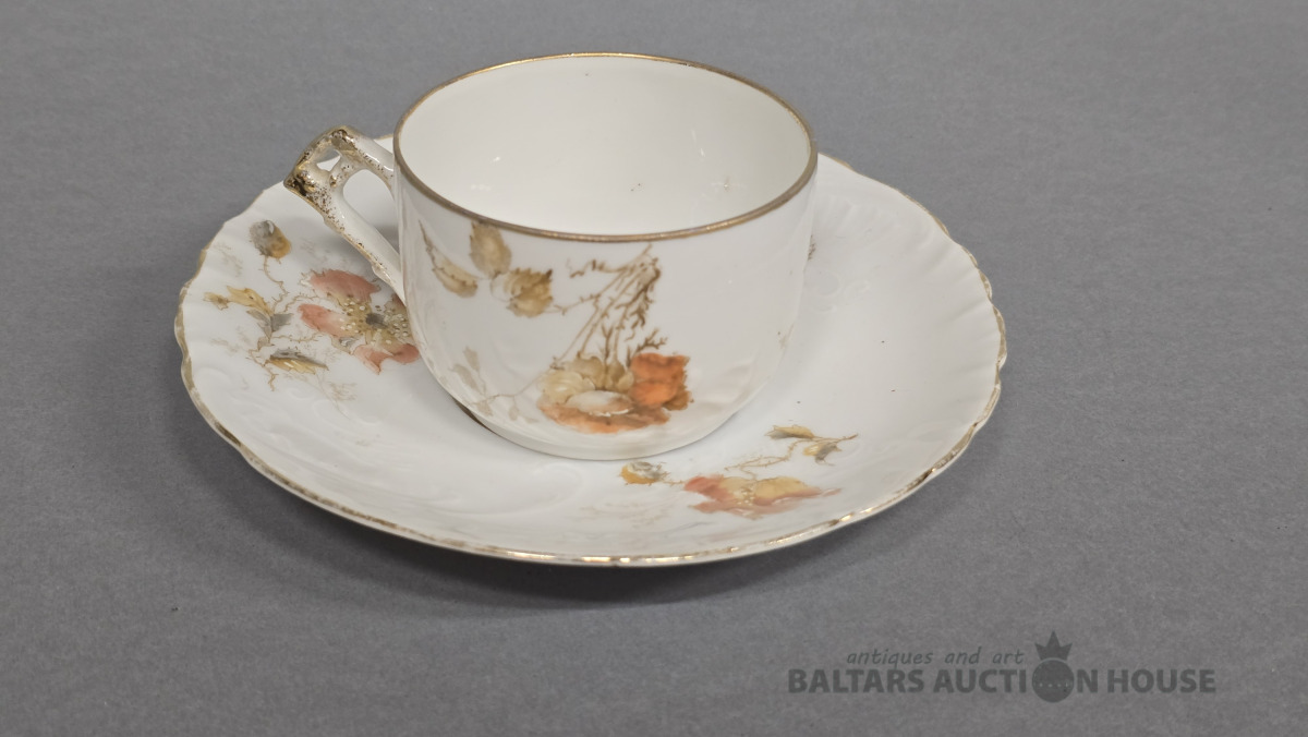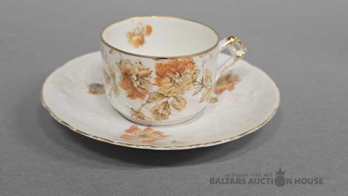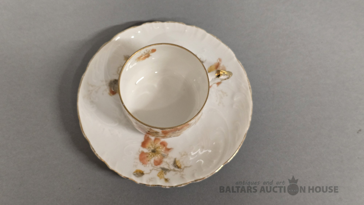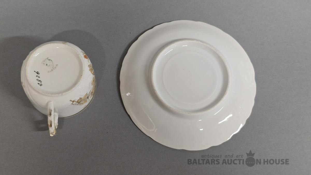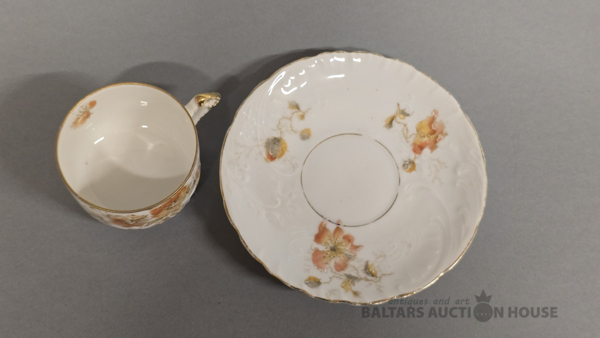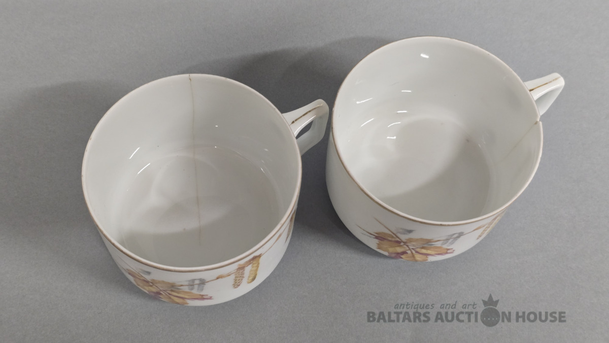 Porcelāna tasītes 2 gab. Kuzņecova porcelāna fabrika. 20 gs.Roku gleznojums. (defekti)