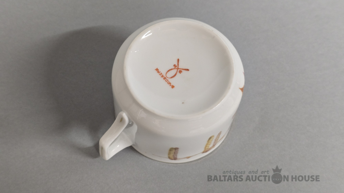 Porcelāna tasīte. Kuzņecova porcelāna fabrika. 20 gs.Roku gleznojums.
