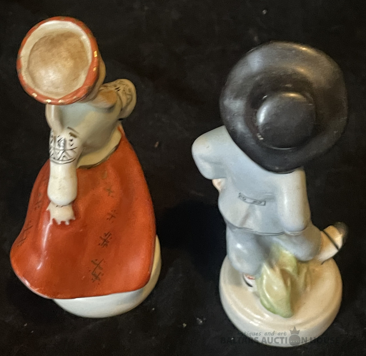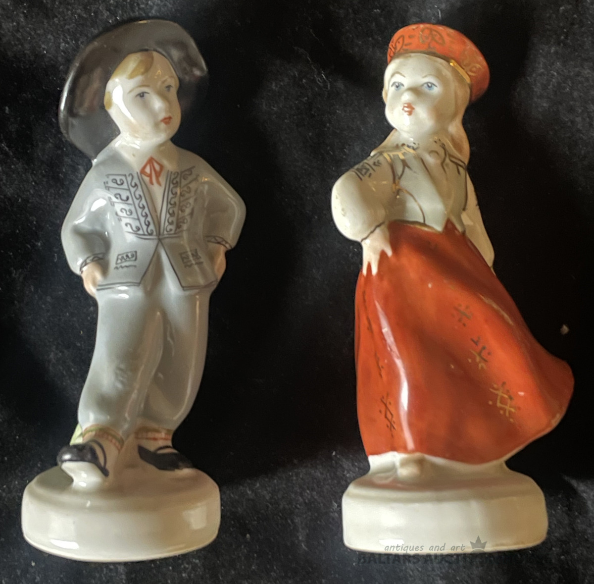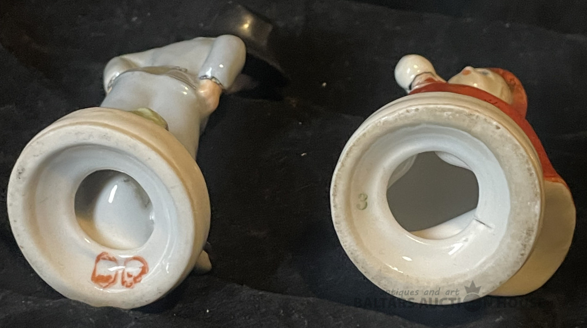 TAUTISKAIS PĀRĪTIS, porcelāns, h=10,6 un 11 cm, bez restaurācijas un nošķēlumiem, metenei rūpnīcas plaisa pie figūriņas pamatnes, Rīga