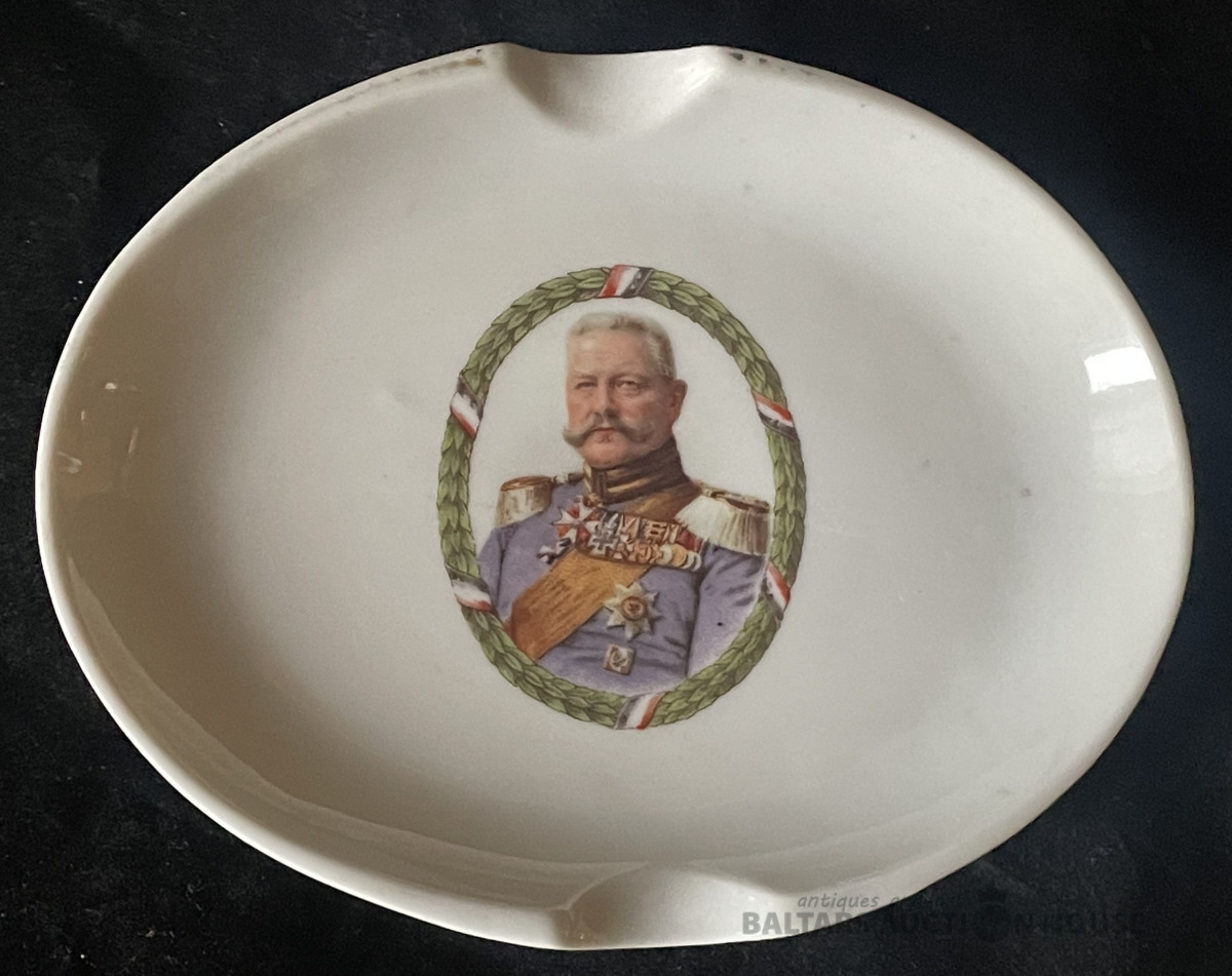 Pelnutrauks HINDENBURGS,. porcelāns, 11,2x14,4 cm, Šie priekšmeti tika ražoti Vācijā Pirmā pasaules kara laikā (1914–1918).