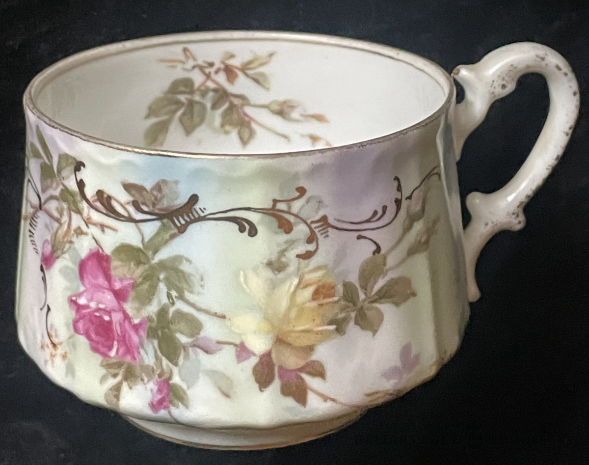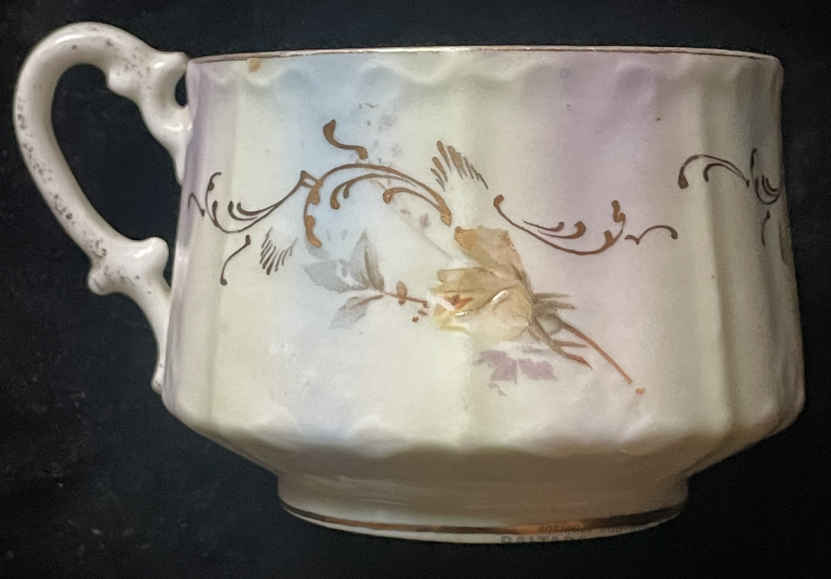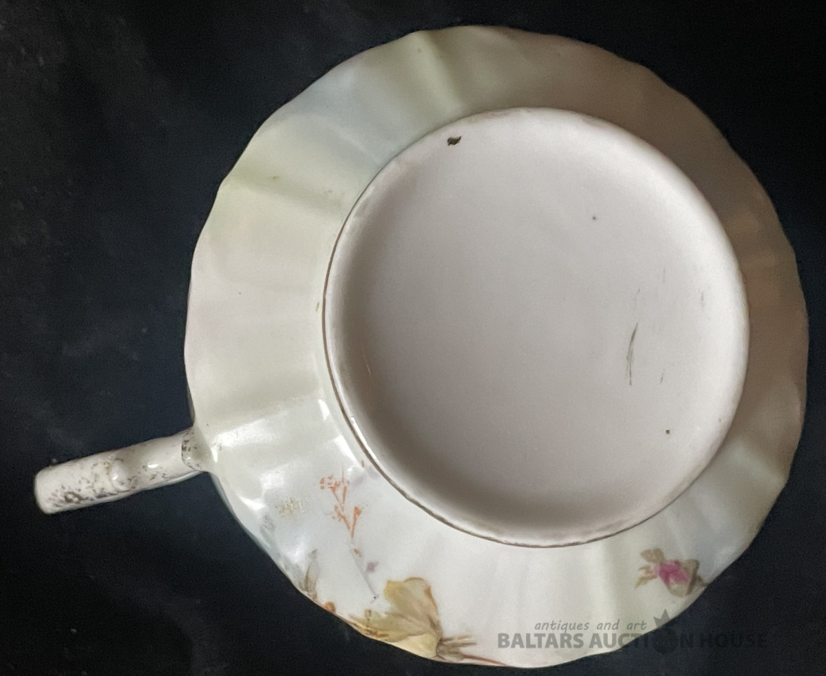 Krūzīte, porcelāns , zeltījums, dekols ar rokas piegleznojumu, h=5,3 cm, ap 1900.g., Vācija ?
