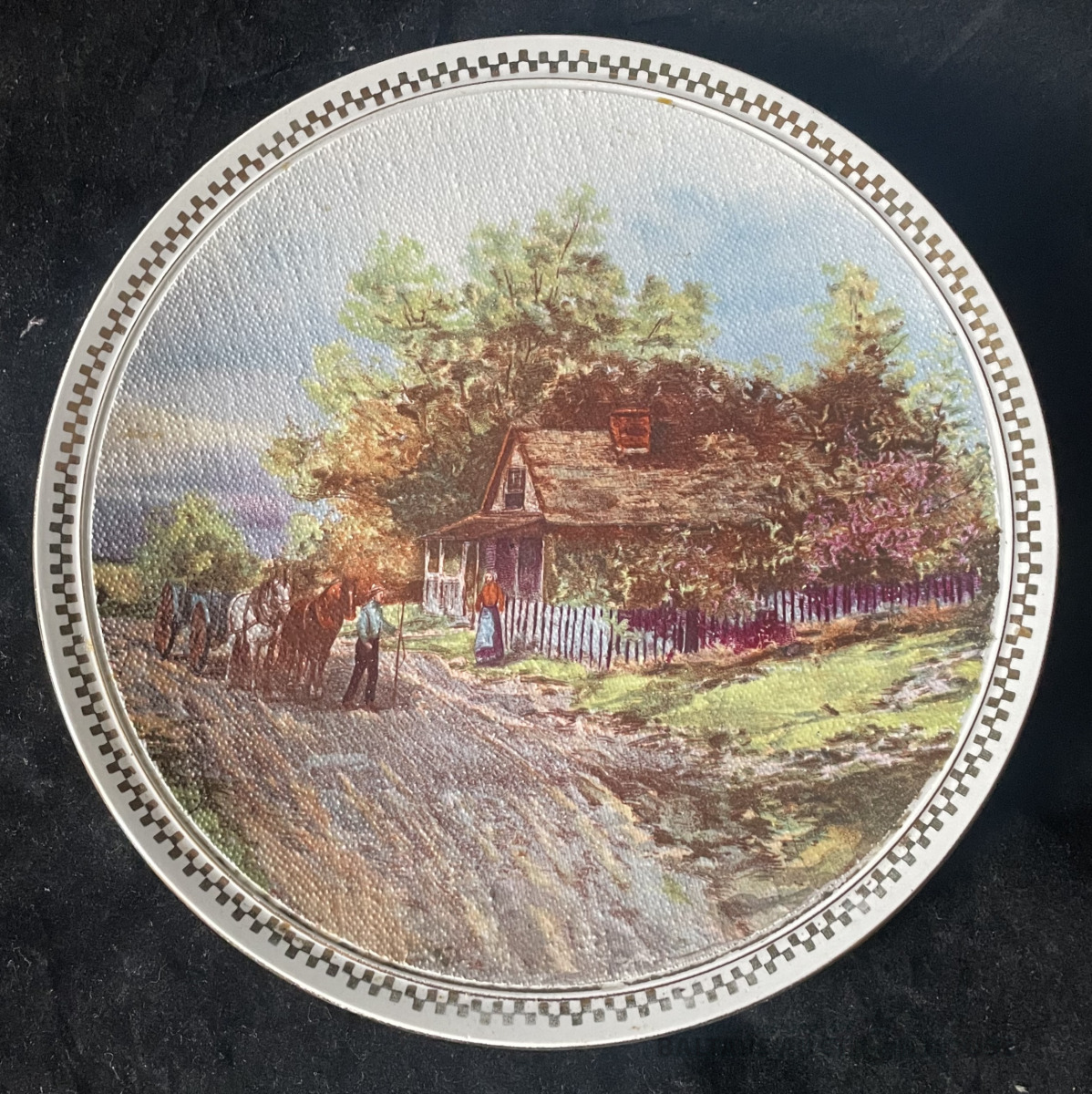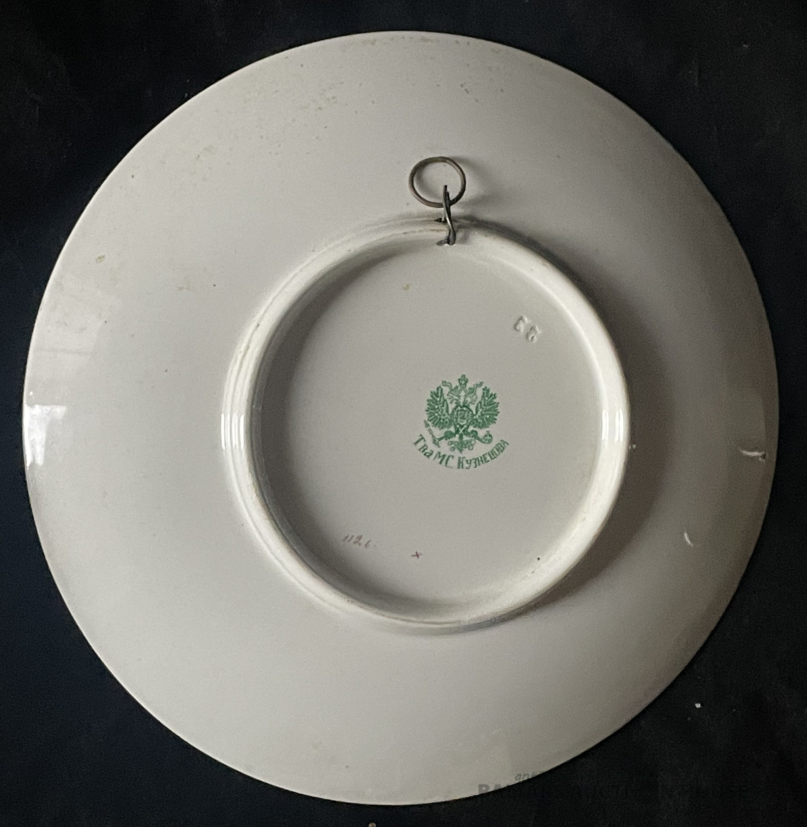 Sienas šķīvis AINAVA AR PAJŪGU, porcelāns, dekols, zeltījums, d=21,6 cm, Kuzņecova f-ka, ap 1900.g.