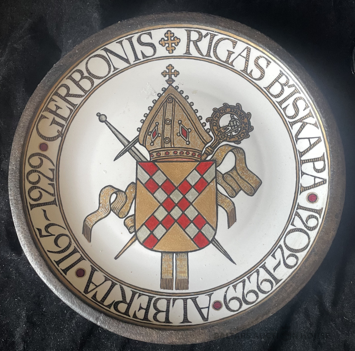 Ēriks Priedkalns DEKORATĪVS ŠĶĪVIS , porcelāns, roku gleznojums, d=26,6 ar ādas kārbu