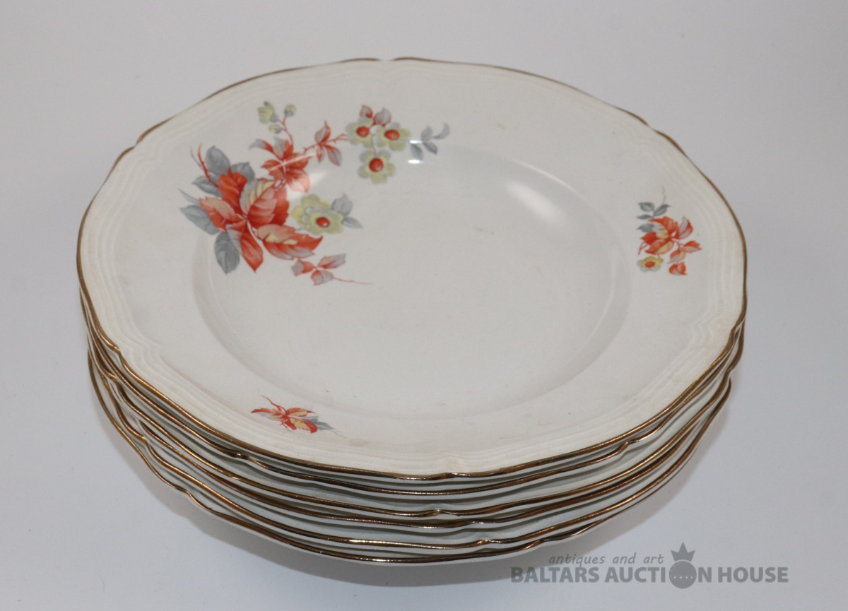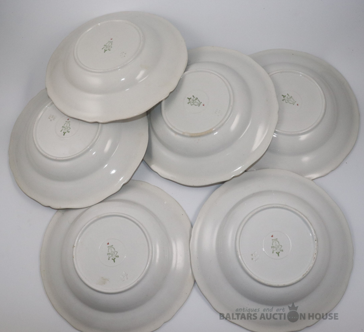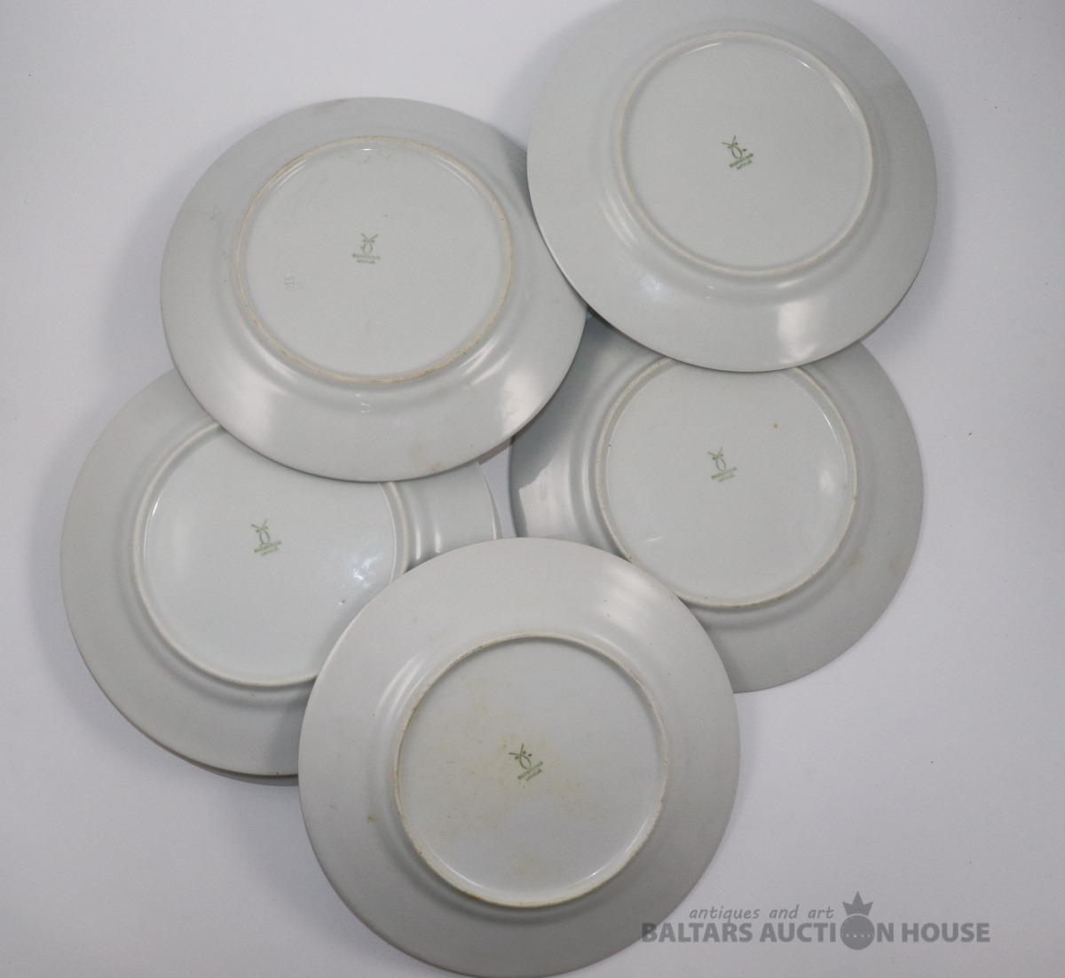 Šķīvji 5 gab. Porcelāns, Kuzņecova fabrika. d=24,5 cm. 1 gab. dziļais - h=3,7 cm. d=25 cm