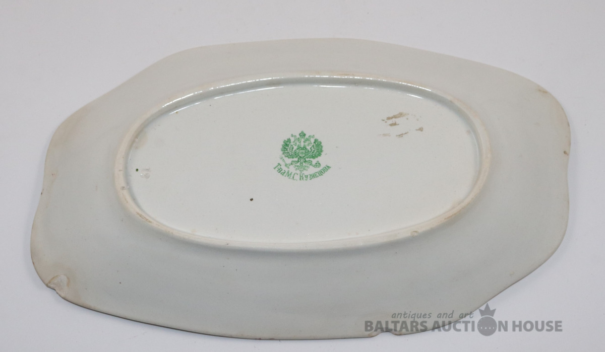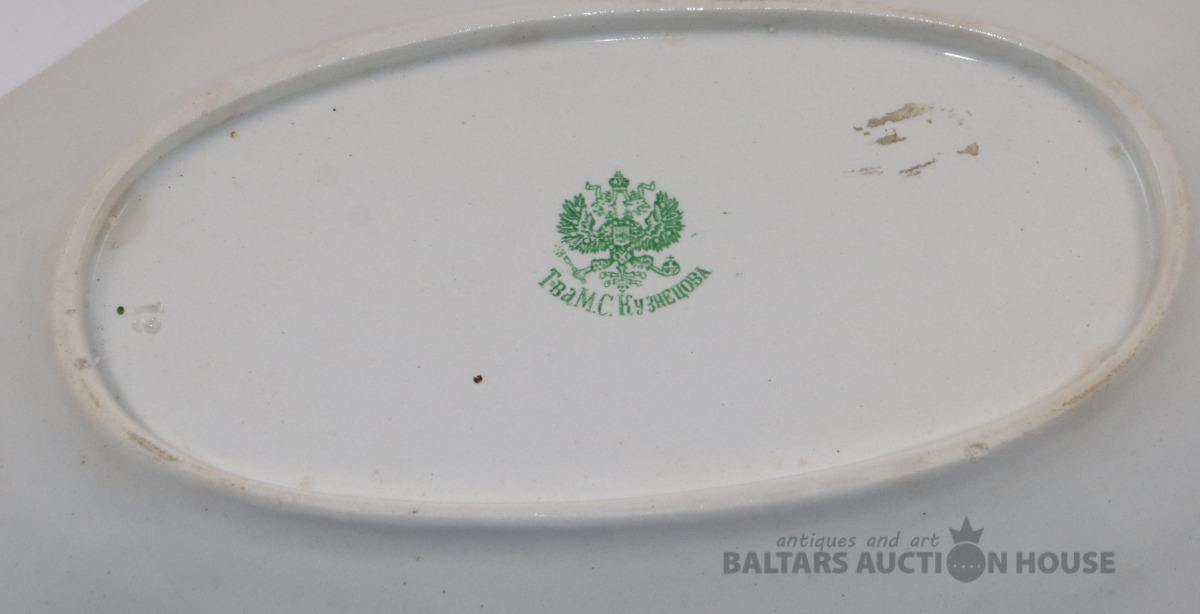 Šķīvis. Porcelāns, Kuzņecova fabrika. 23x35 cm. Divi nošķēlumi.