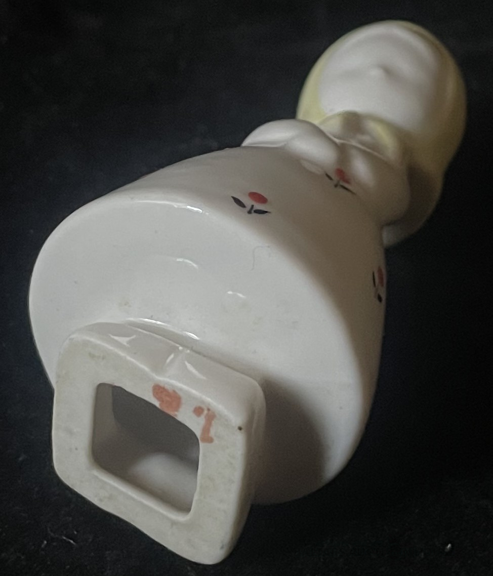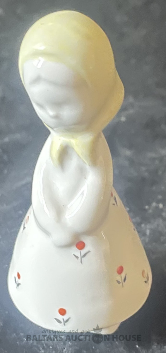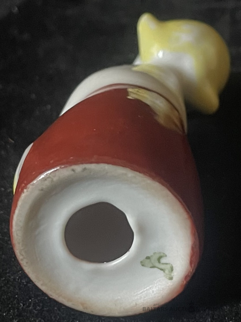 MEITENĪTE AR ZIEDU, porcelāns, h=7,3 cm, RĪGA, nedaudz nomazgāta dzeltenā krāsa kakla rajonā aizmugurē