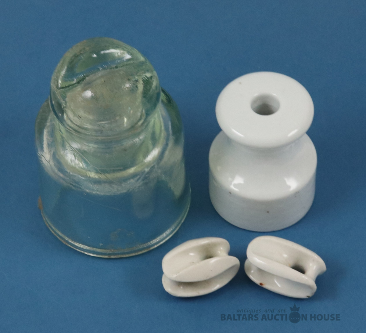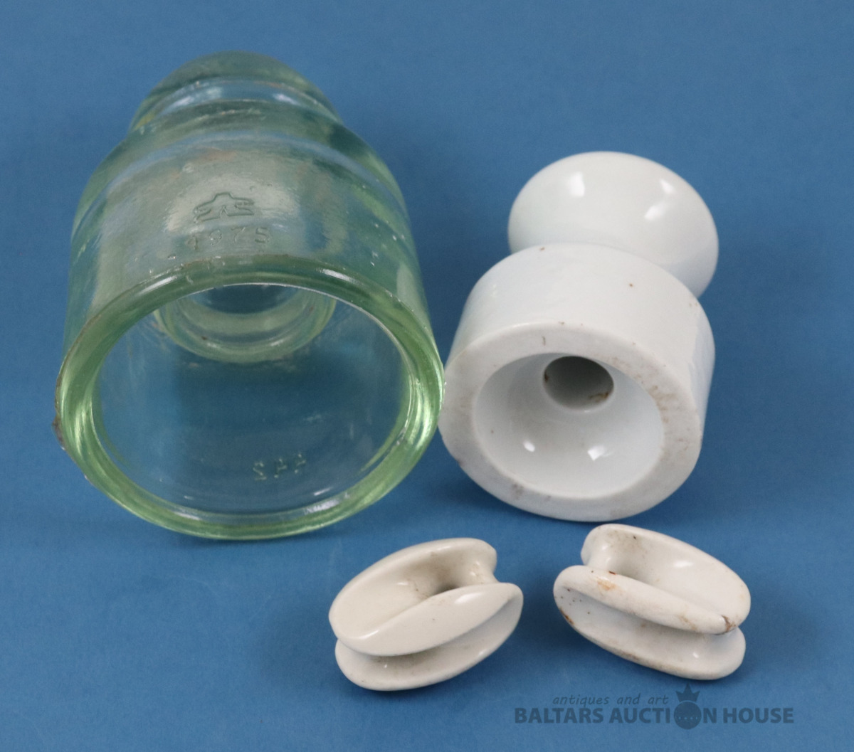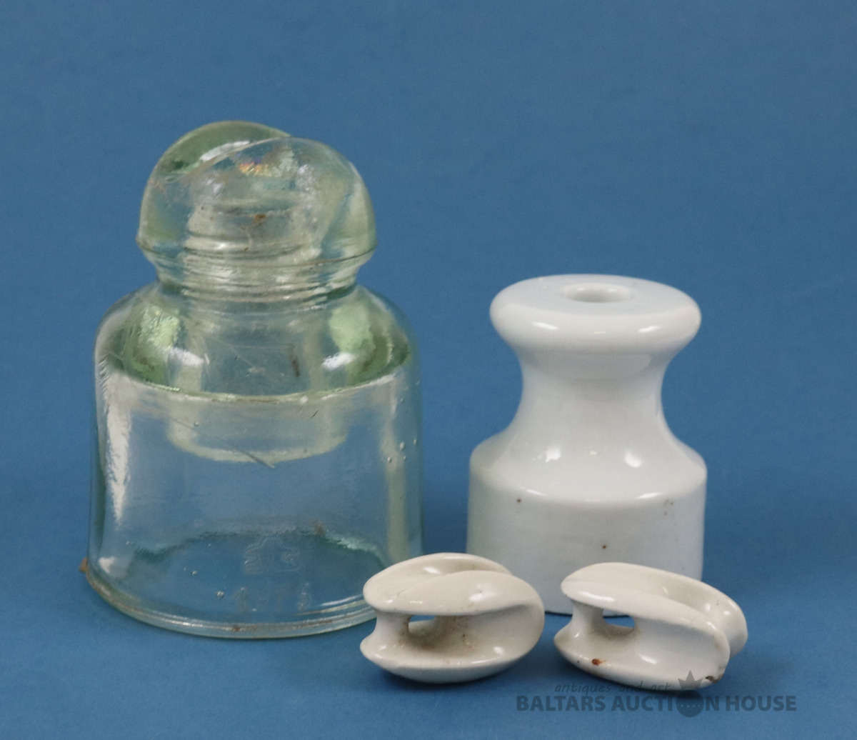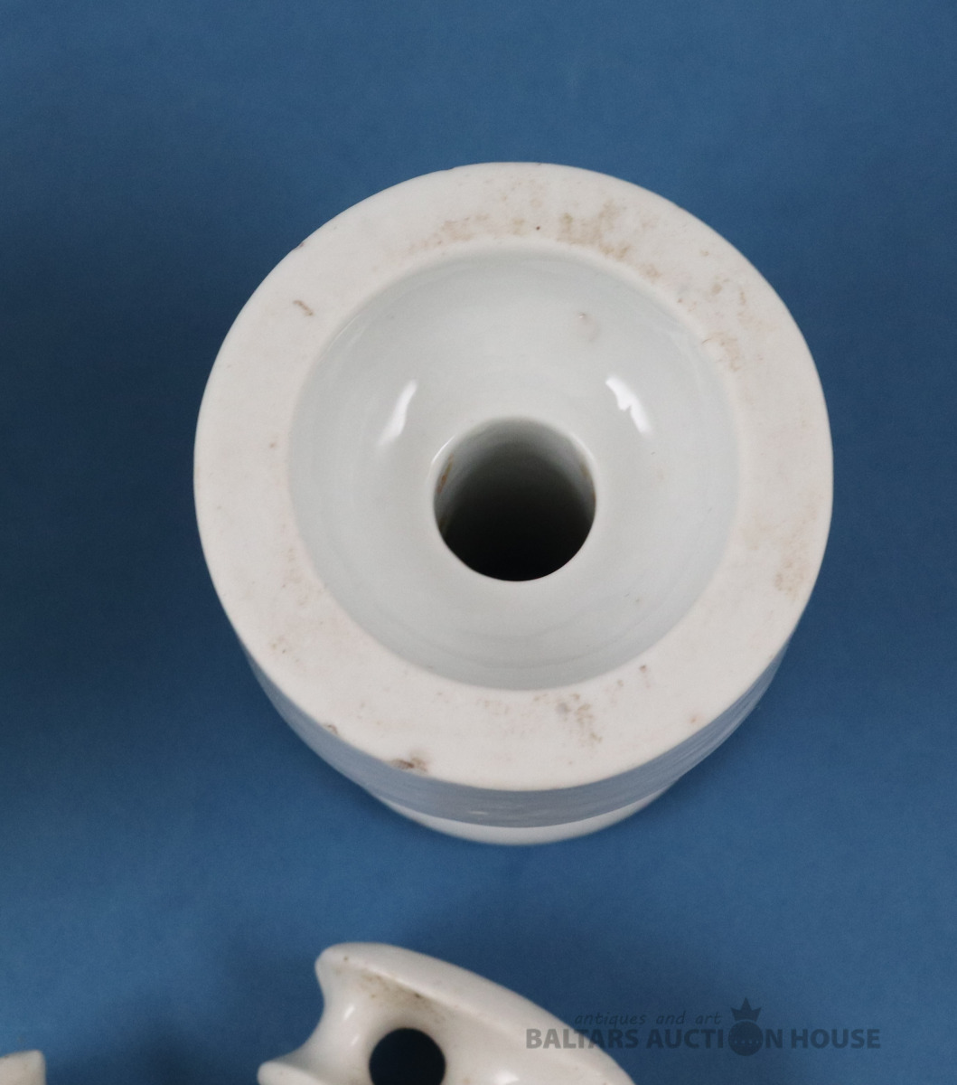 Izolatori 4 gab. Porcelāns, stikls. Stikla - 1975./442. h=11 un 7 cm