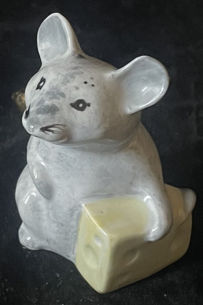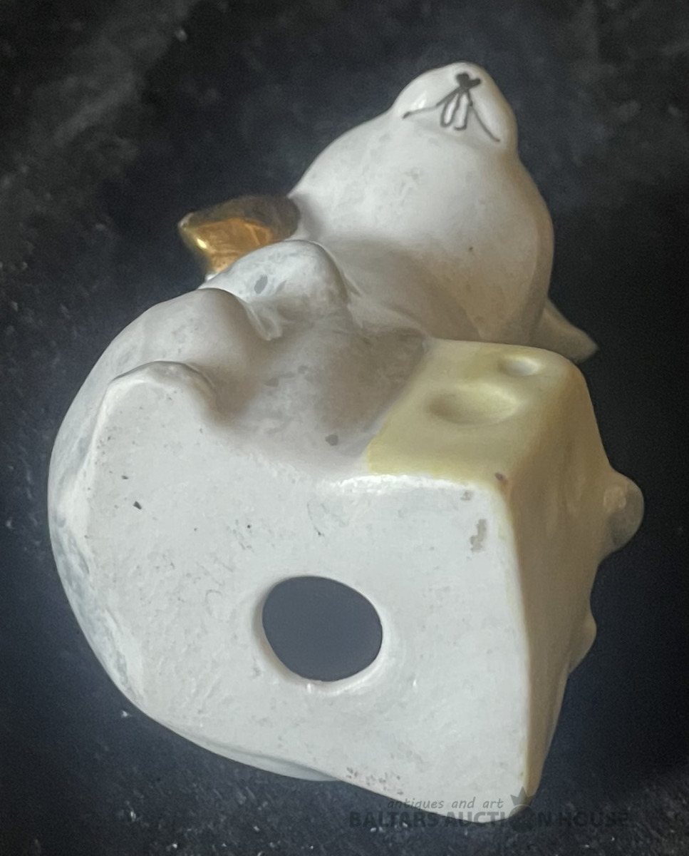 SMAIDĪGĀ PELE AR SIERA GABALU, Rīga, autordarbs, Rīgas porcelāna rūpnīca, modeļa autors - Maksimenkova Larisa, 20. gs. 80tie gadi, porcelāns, rokas krāsojums h=6.5 cm. RETA !!!!!!