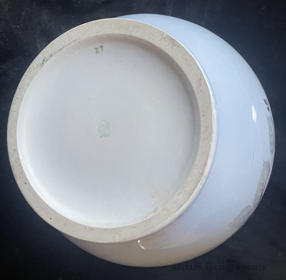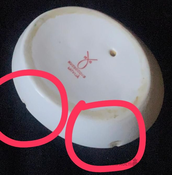 Pelnu trauks, porcelāns, roku gleznojums, 11,4x9,3 cm, Kuzņecova f-ka Rīga, ir nošķēlumi !