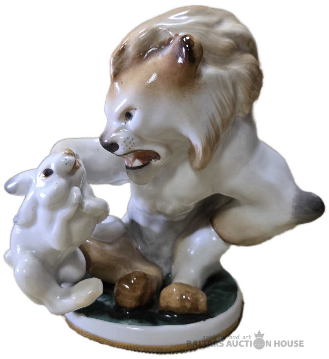 Figūra LAUVA UN ZAĶIS. Porcelāns, PSRS, LFZ - Lomonosova porcelāna rūpnīca, h=13,8 cm