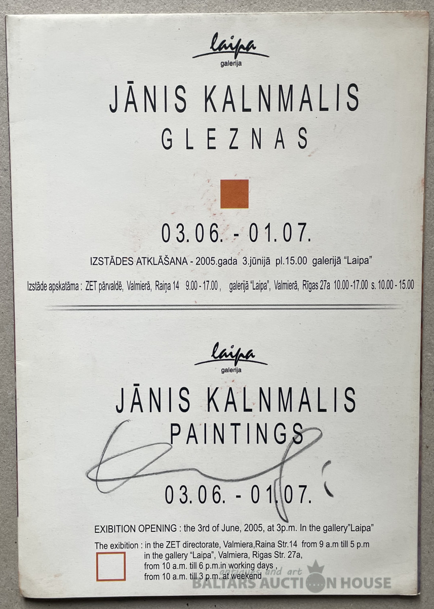 Jāņa Kalnmaļa 2005..g. gleznu izstādes katalogs ar J.K. autogrāfu