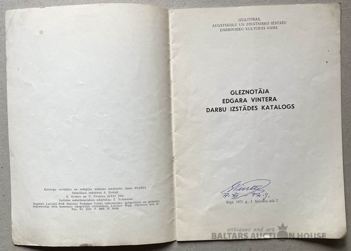 Edgara Vintera 1972.g. gleznu izstādes katalogs ar Ed.V. autogrāfu