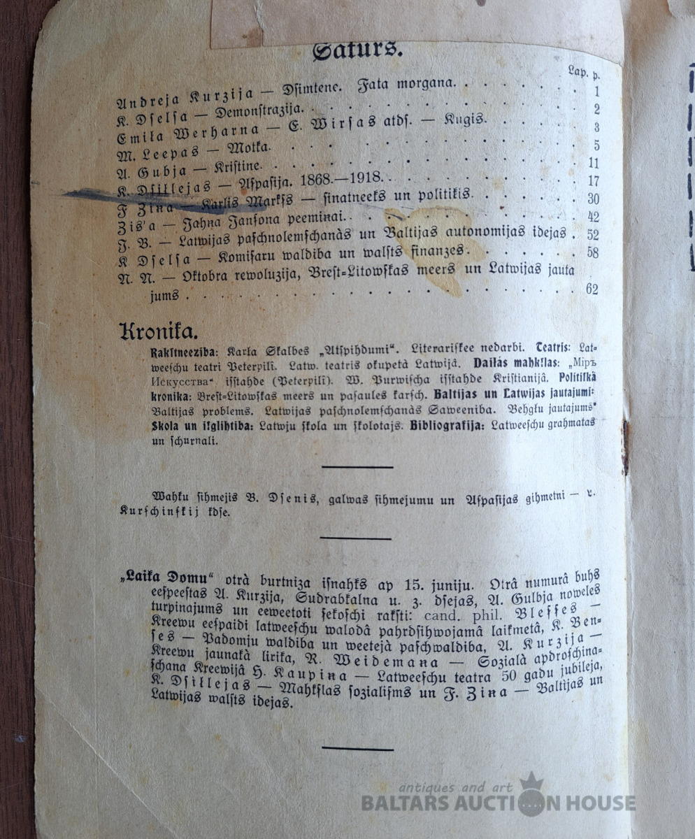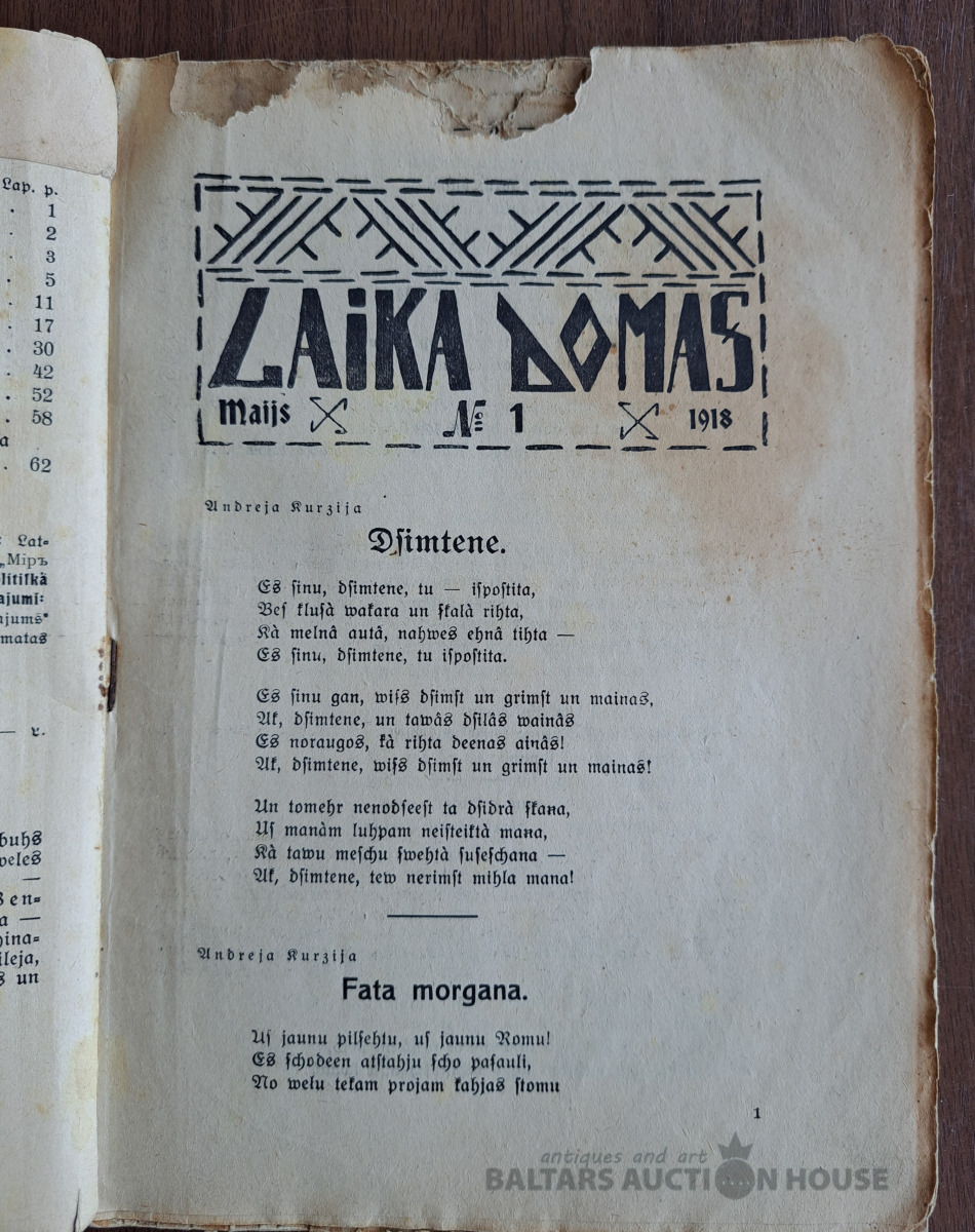 Laika domas. 1918.g., Iznāca pavisam 2 numuri, žurnāls slēgts ar preses, aģitācijas un propagandas komisāra lēmumu.
