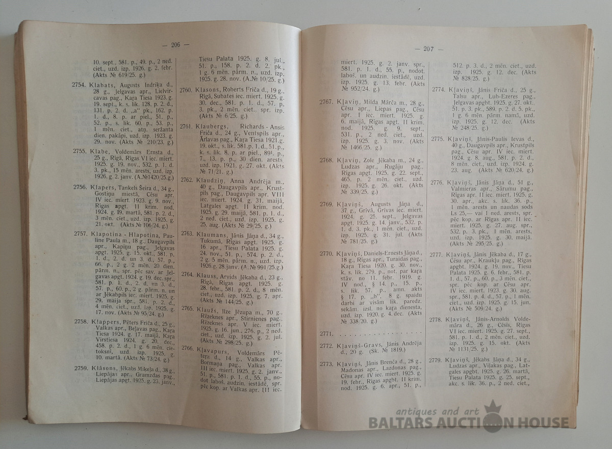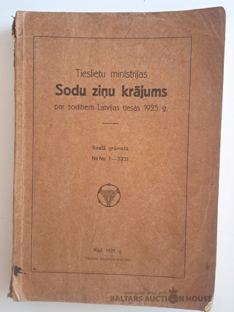 Tieslietu ministrijas sodu ziņu krājums par 1925. gadu., 542 lpp, retums.