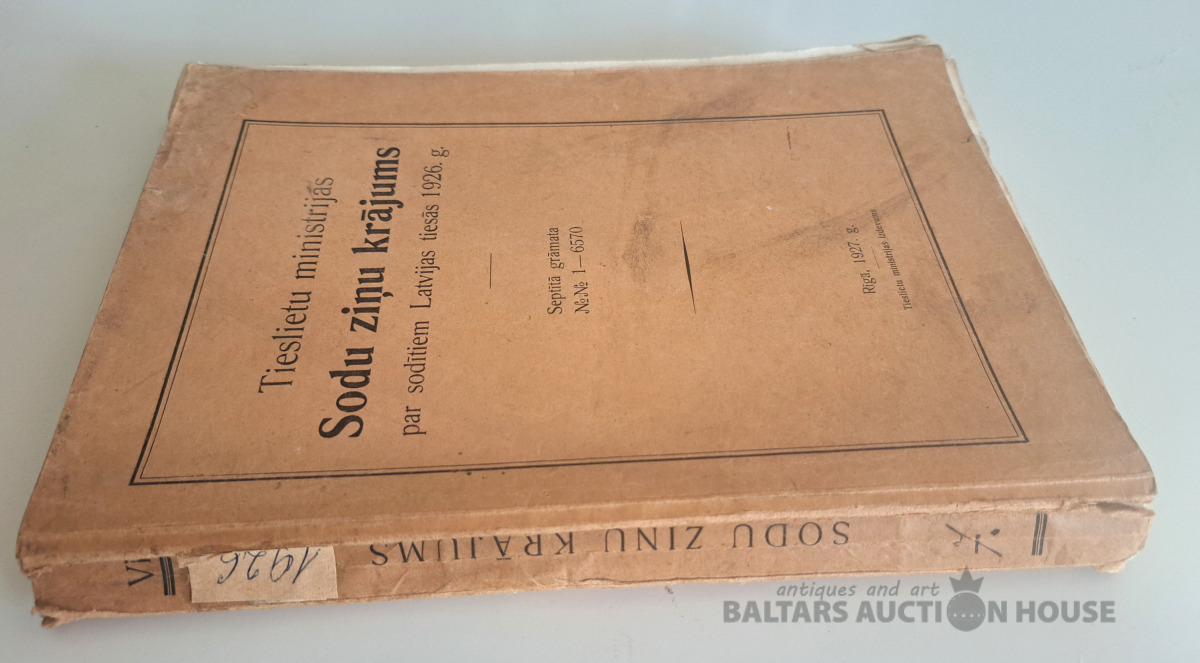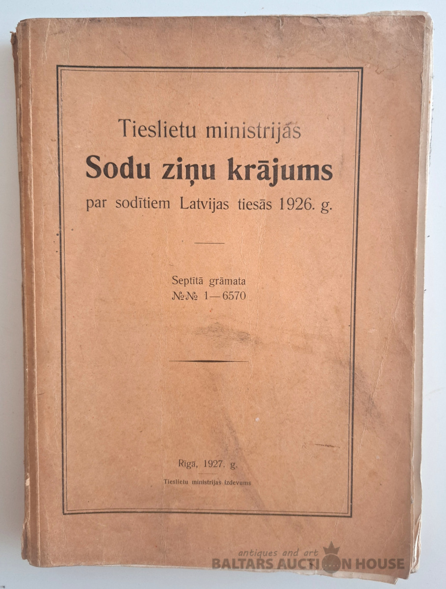 Tieslietu ministrijas sodu ziņu krājums par 1926. gadu., 530 lpp, retums