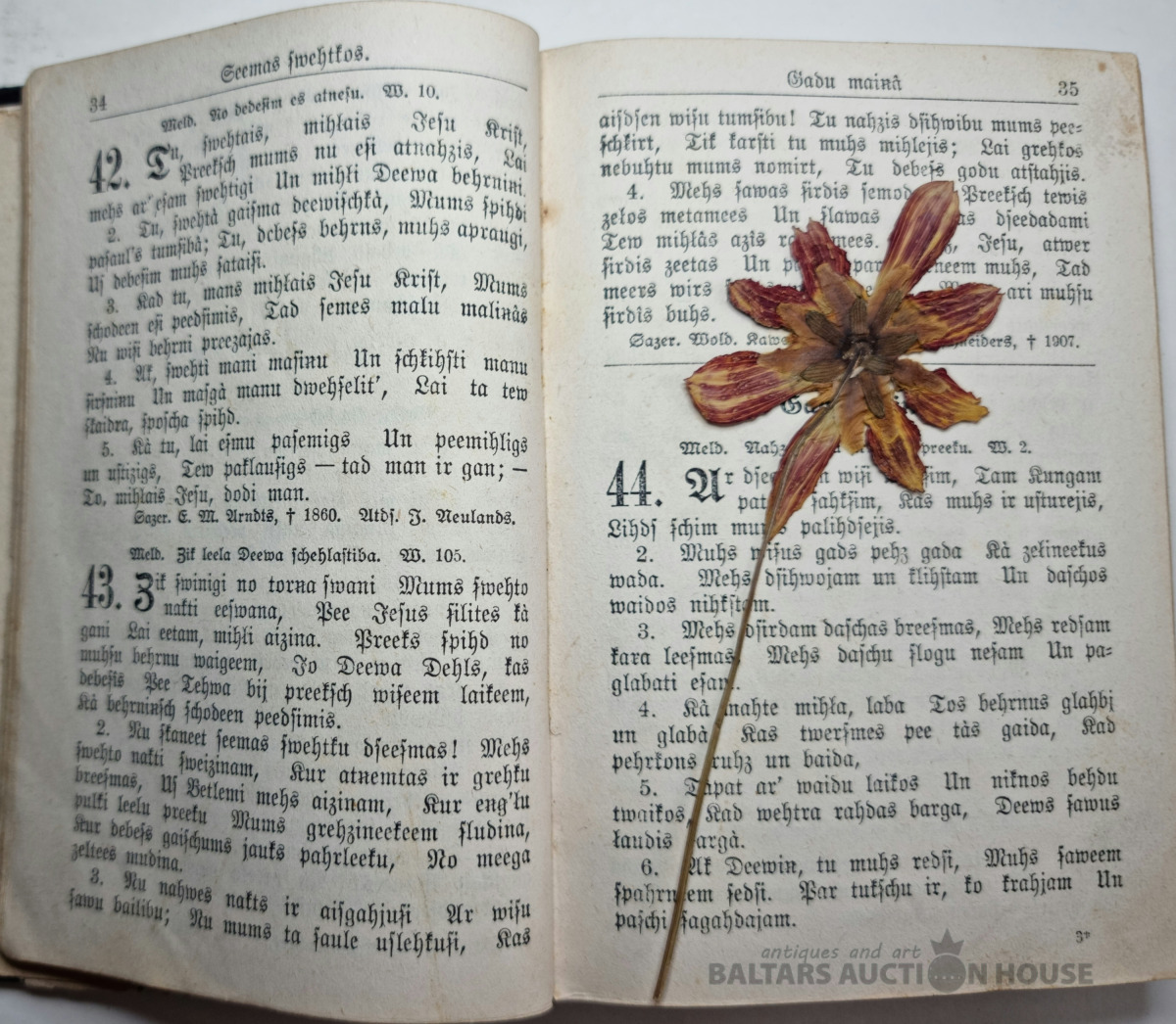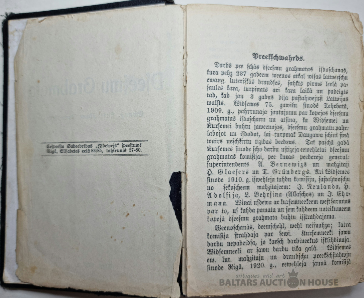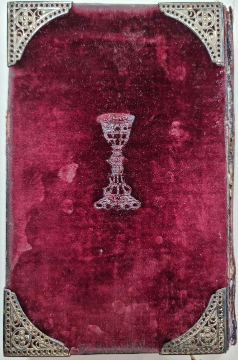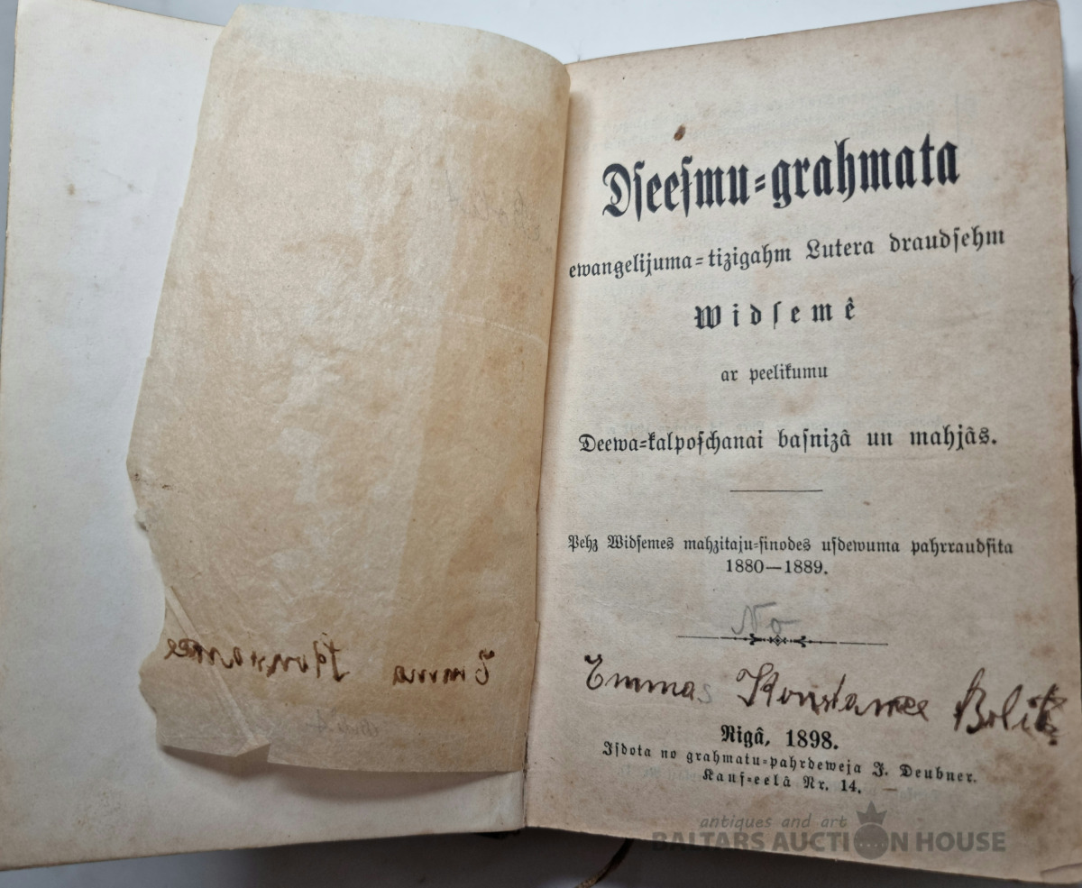 Dziesmu grāmata. Rīgā 1898.g. Vākiem trūkst krusts un kauss, visas lapas vietā, zeltīta no trīs malām!