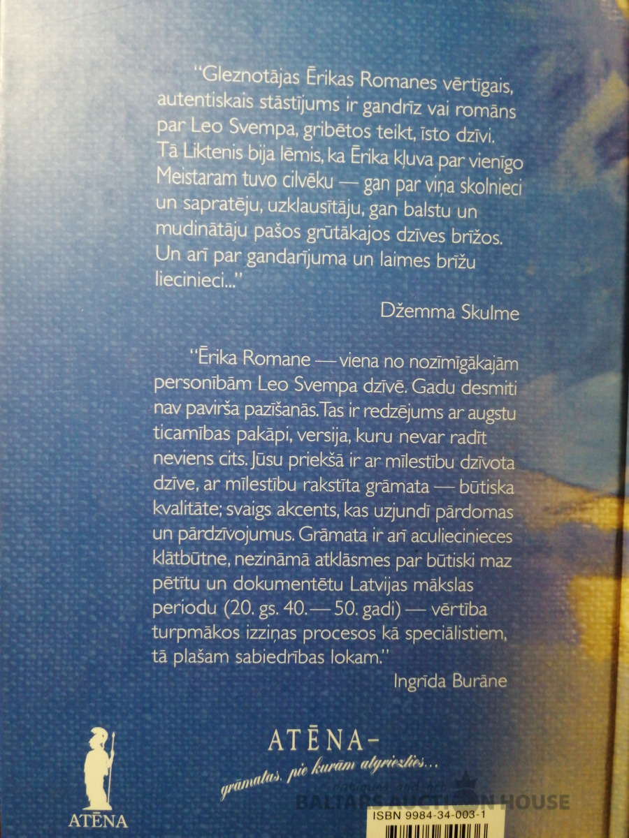 Ērika Romane “Mēs abi”, Atēna, 2002., 407 lpp.Māksliniece par savu dzīvi kopā ar izcilo mākslinieku Leo Svempu. Stāstījumu papildina krāsainas gleznu reprodukcijas. Jauna.