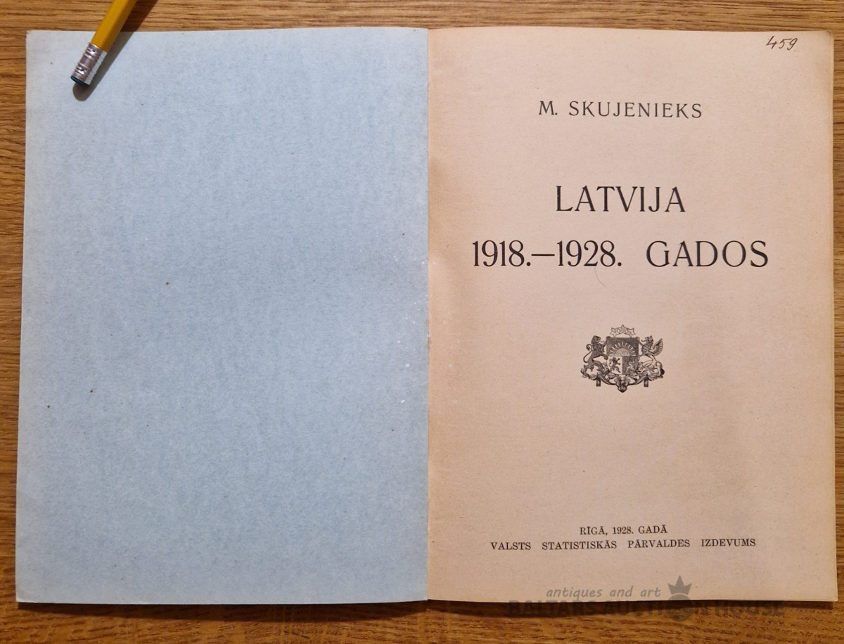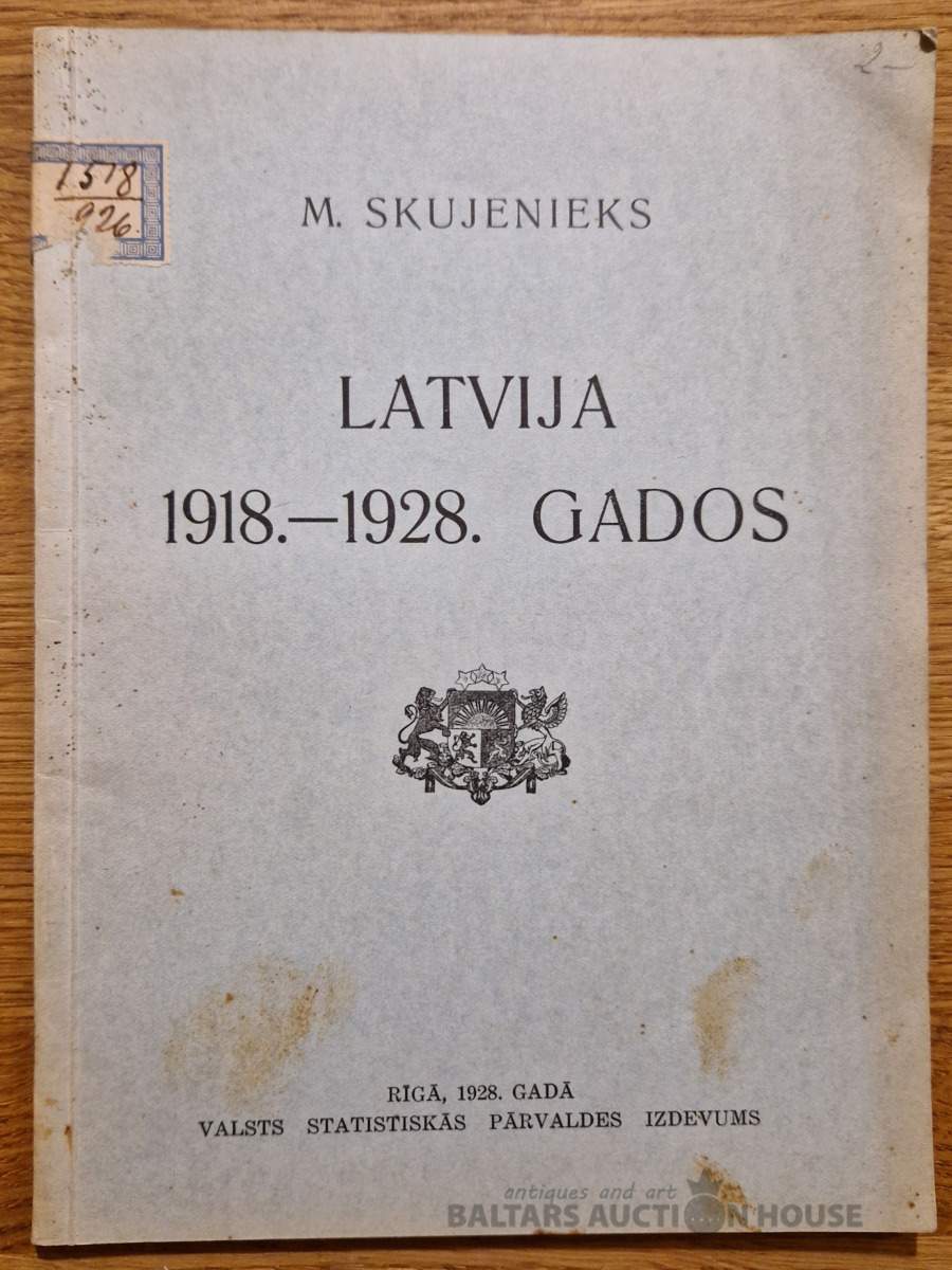 Latvija 1918.-1928. gados. M. Skujenieks. Rīga, Valsts Statistiskās pārvaldes izdevums, 1928. gads