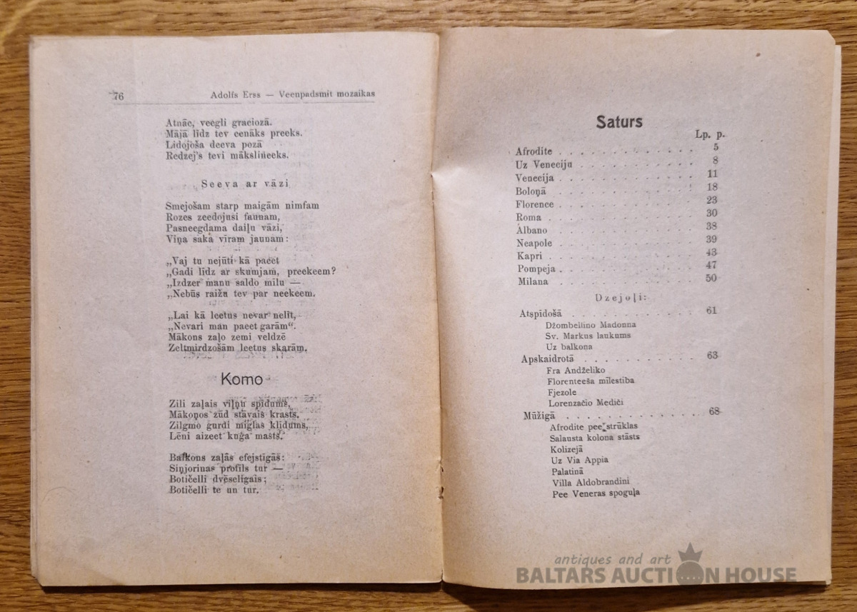 Vienpadsmit mozaikas no Italijas. Adolfs Erss. Rozes apgādiens, 1923. gads