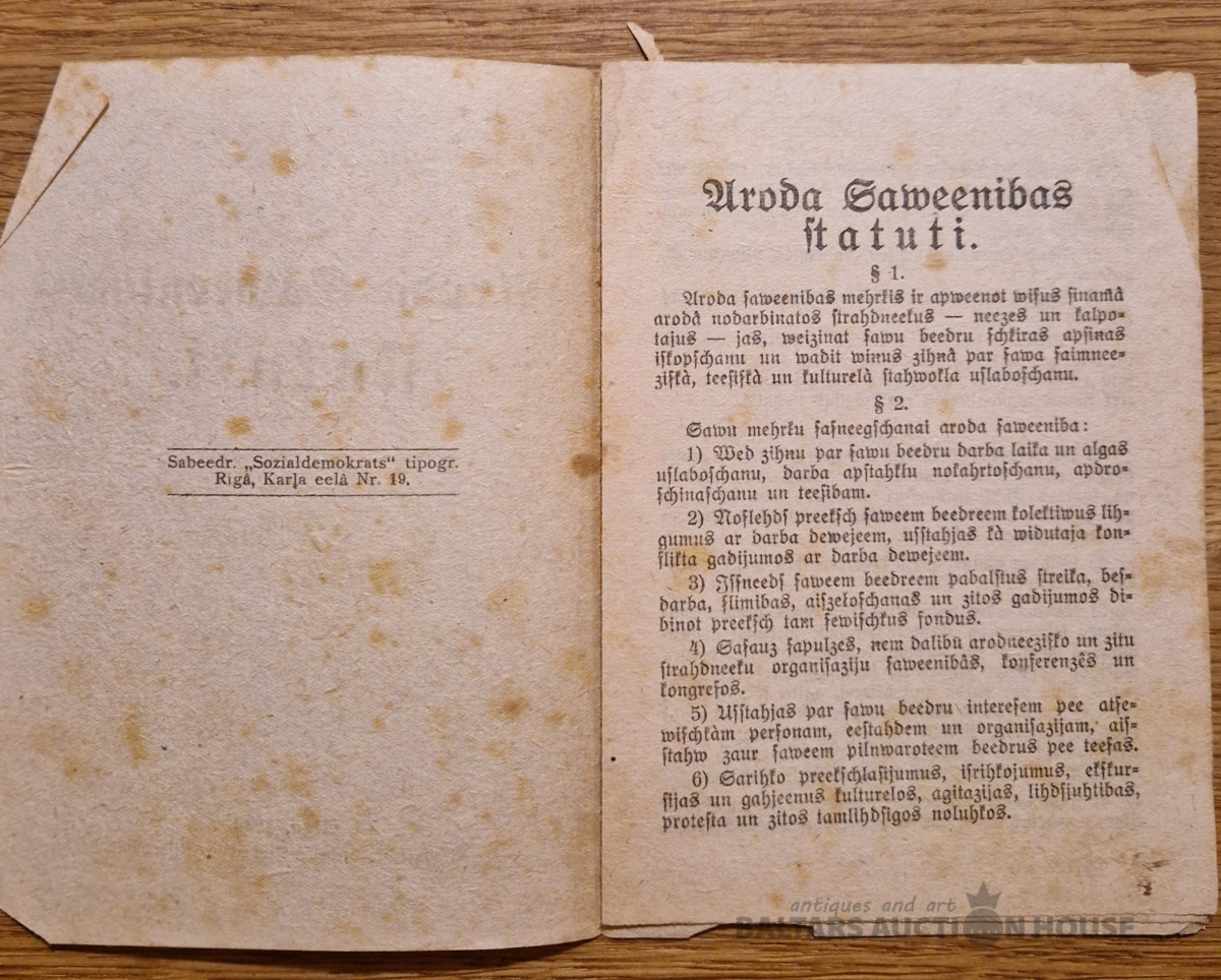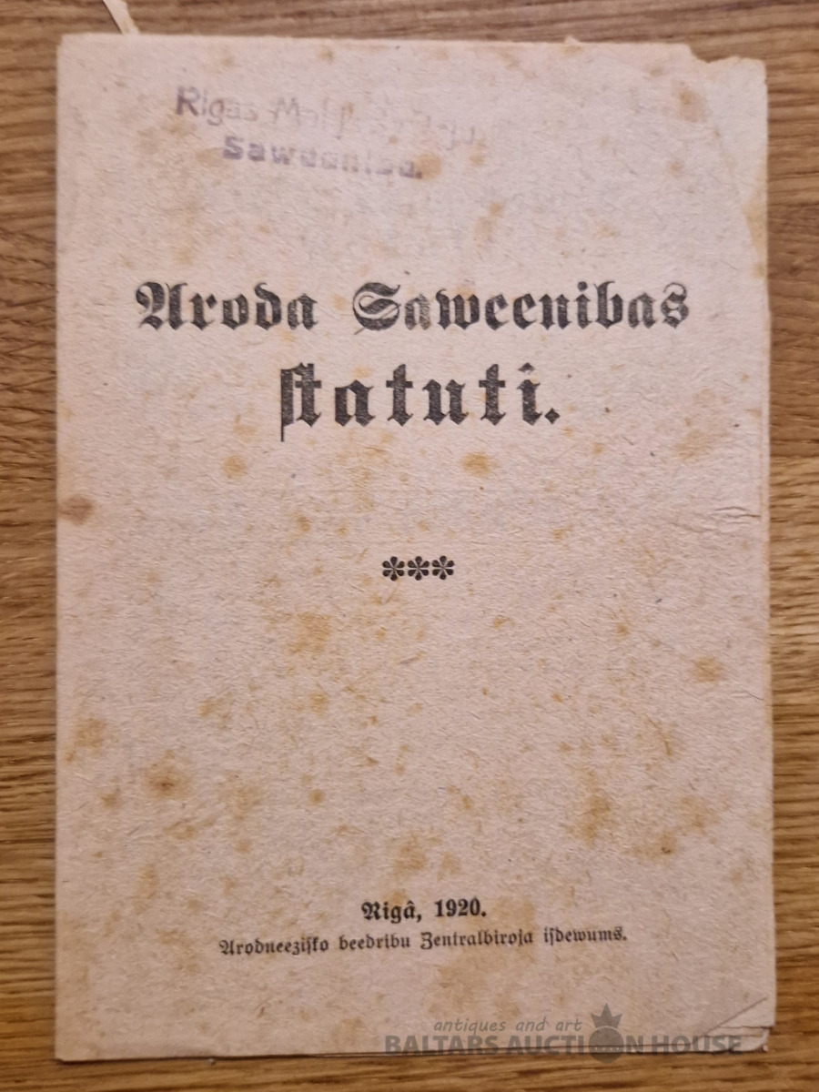Aroda savienības statūti. Rīga, Arodniecisko biedrību Centrālbiroja izdevums, 1920. gads