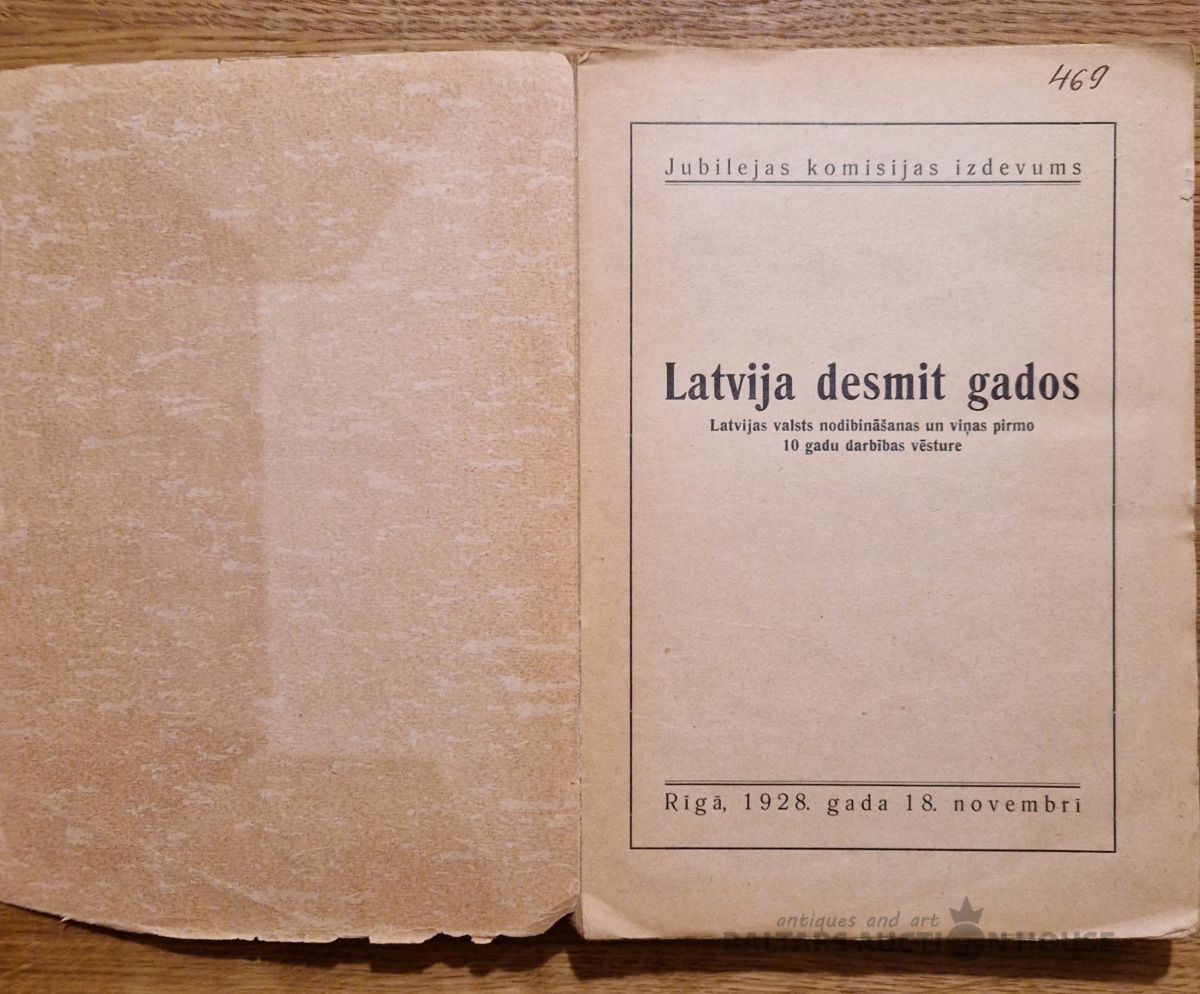 Latvija desmit gados. Latvijas valsts nodibināšanas un viņas pirmo 10 gadu darbības vēsture. Rīga, 1928. gada 18. novembris