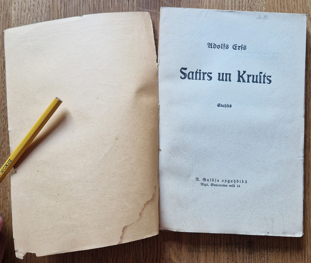 Zatirs un krusts. Adolfs Erss. Vāks: H. Skulme. A. Gulbja apgāds, 1922. gads