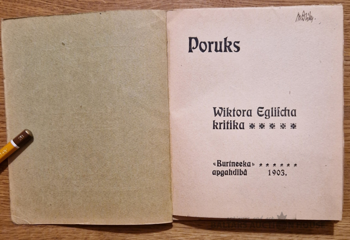 Viktora Eglīša kritika. Poruks. Burtnieka apgādībā, 1903. gads