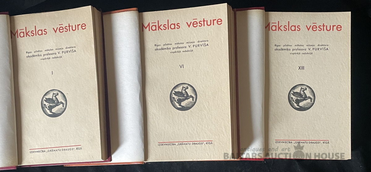 Grāmatas V,Purvīša MĀKSLAS VĒSTURE I, II, III daļa, iesietas burtnīcas, tīras un ar krās.ilustrācijām