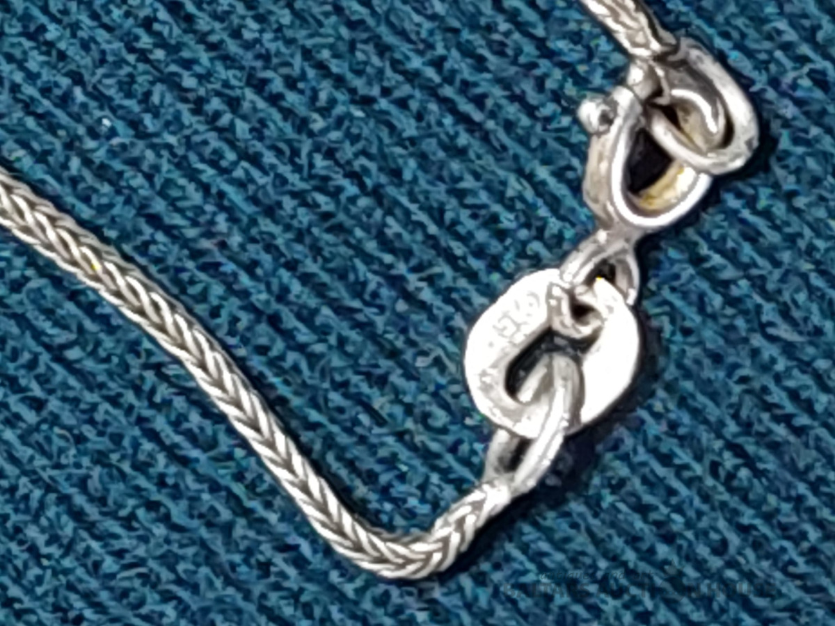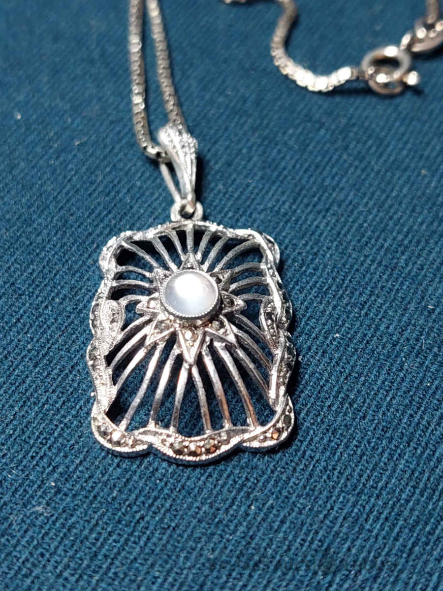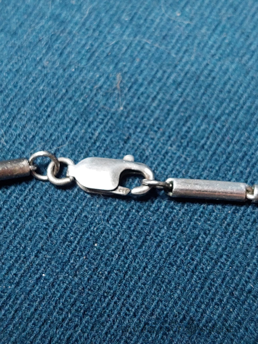 Sudraba kaklarota ar dabīgo akmeni un smalkiem markazitiem. 835 prove, garums-52cm.